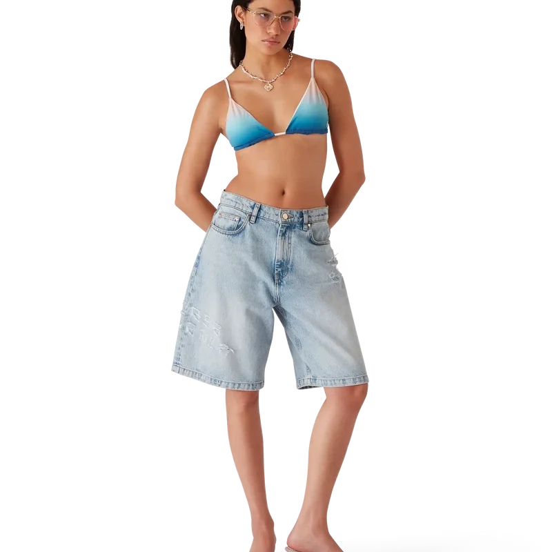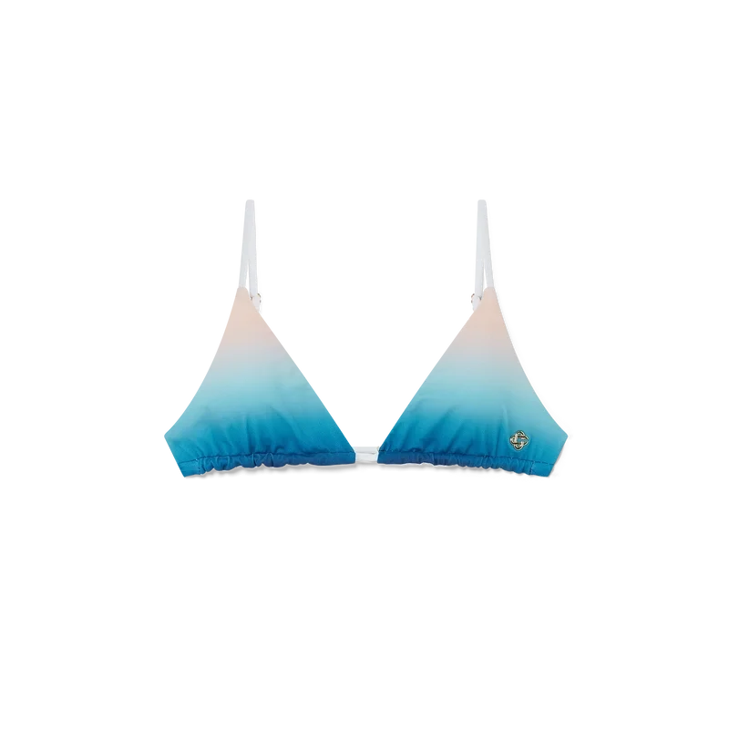 Das Gradient-Bikini-Oberteil ist ein bedrucktes Modell aus einem atmungsaktiven Polyester-Mischgewebe, das die Farbverläufe dieser Saison aufgreift. Abgerundet durch kontrastierende weiße Bindebänder – dieses Modell ist dazu gedacht, mit dem passenden Bikini-Unterteil getragen zu werden.