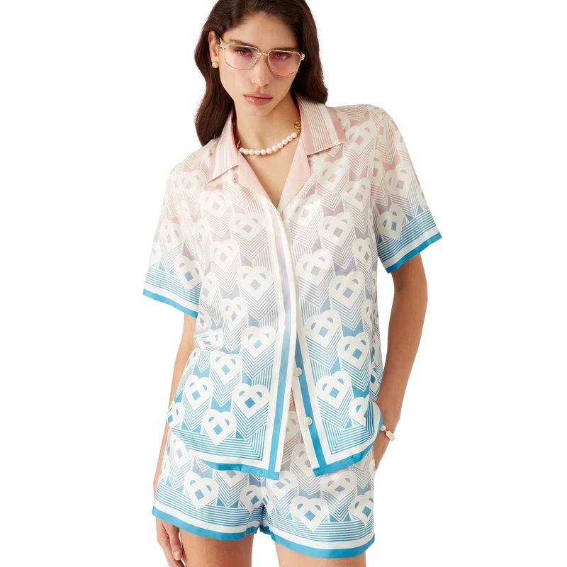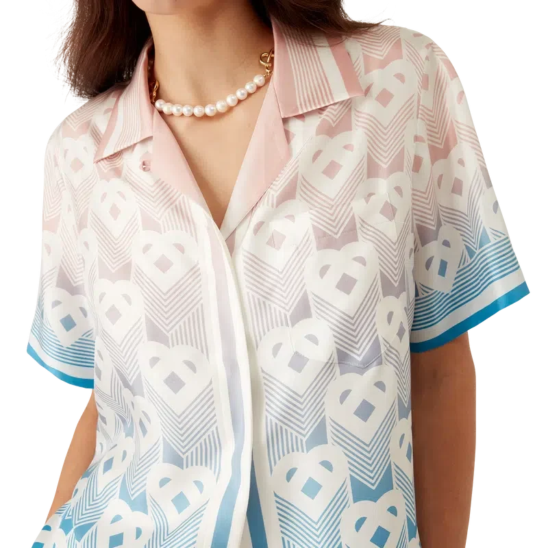 Kurzärmeliges Seidenhemd mit Herz-Monogramm in Farbverlauf