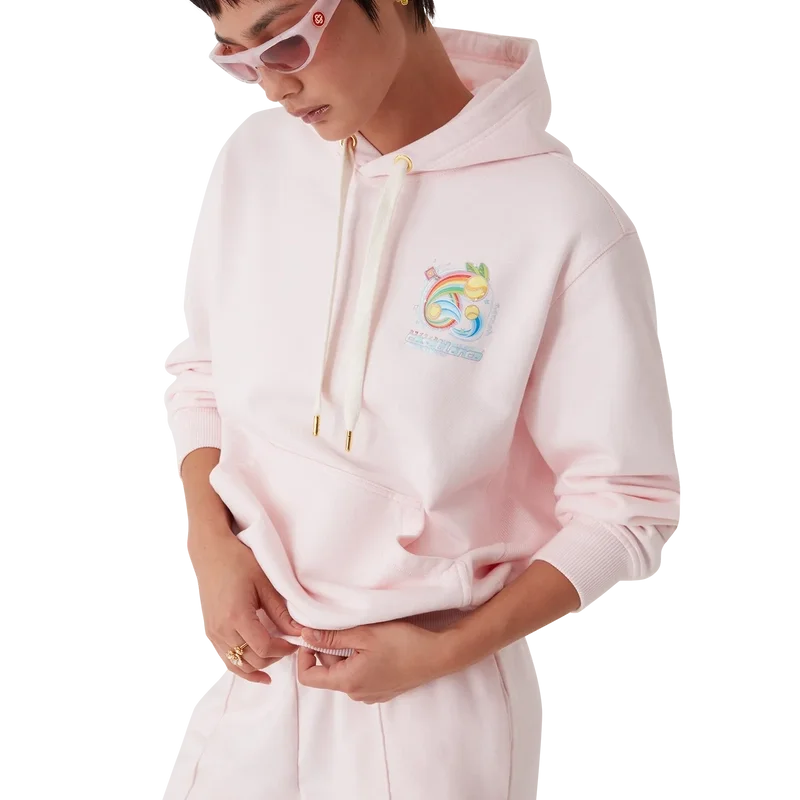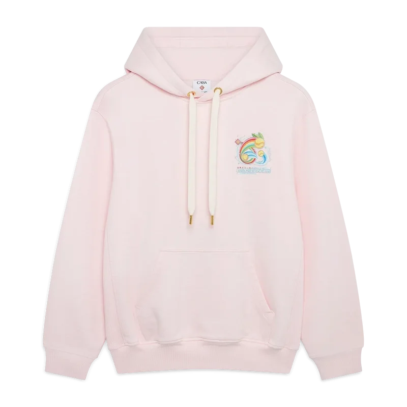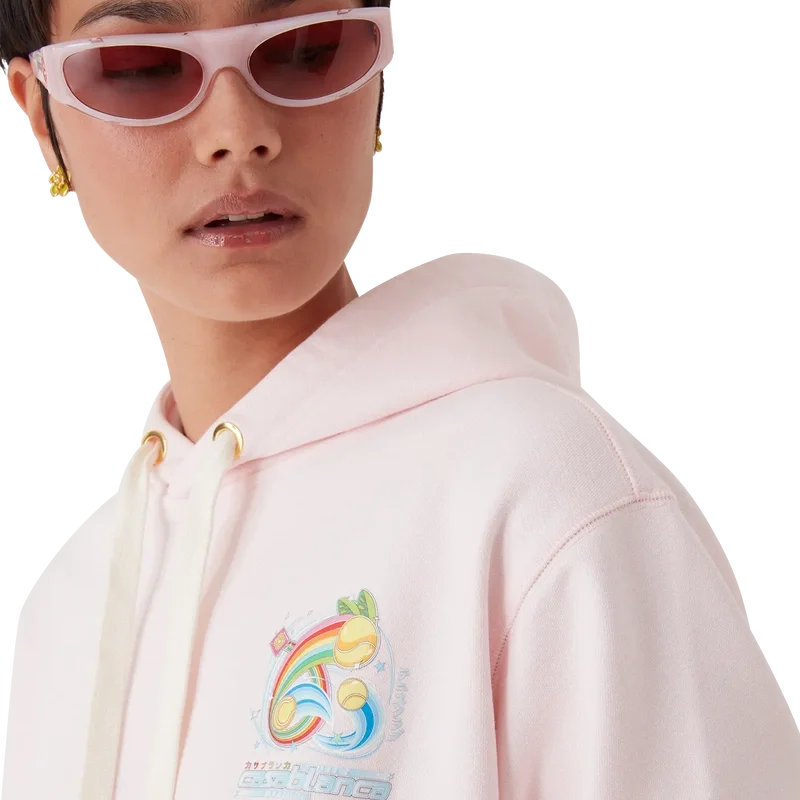 Der Manga-Tennisball-Hoodie ist ein langärmeliges, besticktes Sportbekleidungsdesign mit dem saisonalen Artwork, das die Welt von Kawaii und Manga erkundet und mit der Ikonografie von Casablanca spielt, wobei Tennisbälle als Orangen verwendet werden, um einen lustigen Twist zu erzielen. Abgerundet wird das Design durch eine Kapuze, einen Kordelzugverschluss, eine Kängurutasche sowie gerippte Bündchen und Saumdetails.
