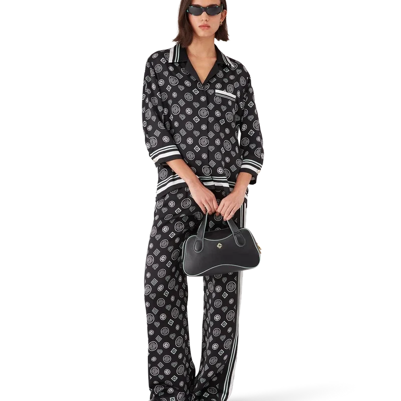 Das Monogram-Pyjamahemd aus Seidensatin ist ein durchgehend bedrucktes Design mit dem Honeydew-Logo-Print der Saison. Dieses Muster unterscheidet sich von unseren anderen Monogrammen, da es einzigartige Formen zu einem einheitlichen Muster kombiniert. Es handelt sich eher um ein ikonisches Design. Abgerundet durch mittellange Ärmel, eine Brusttasche, einen Kubanerkragen, einen Knopfverschluss, die charakteristischen Cc-Logo-Knöpfe sowie schwarz-weiße Streifendetails an Kragen, Manschetten, Saum und Tasche.
