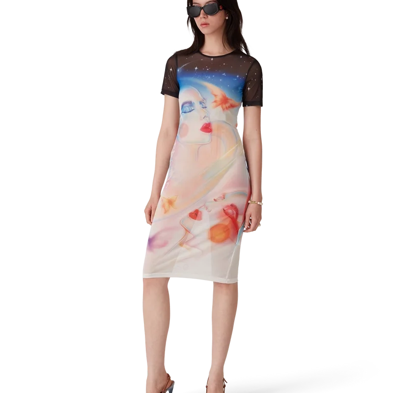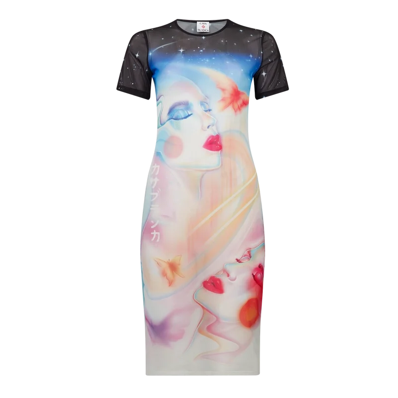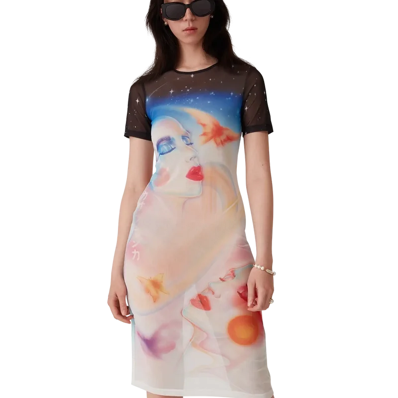Galactic Connection Mesh-Kleid mit kurzen Ärmeln