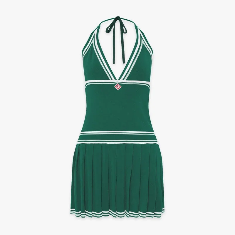 Grünes, plissiertes Neckholder-Minikleid