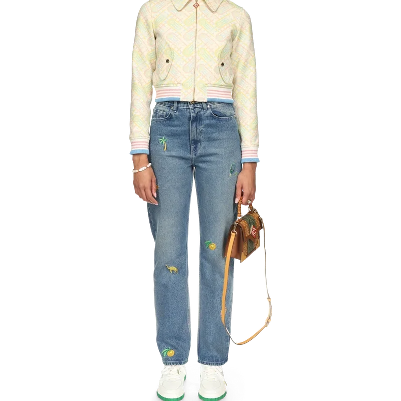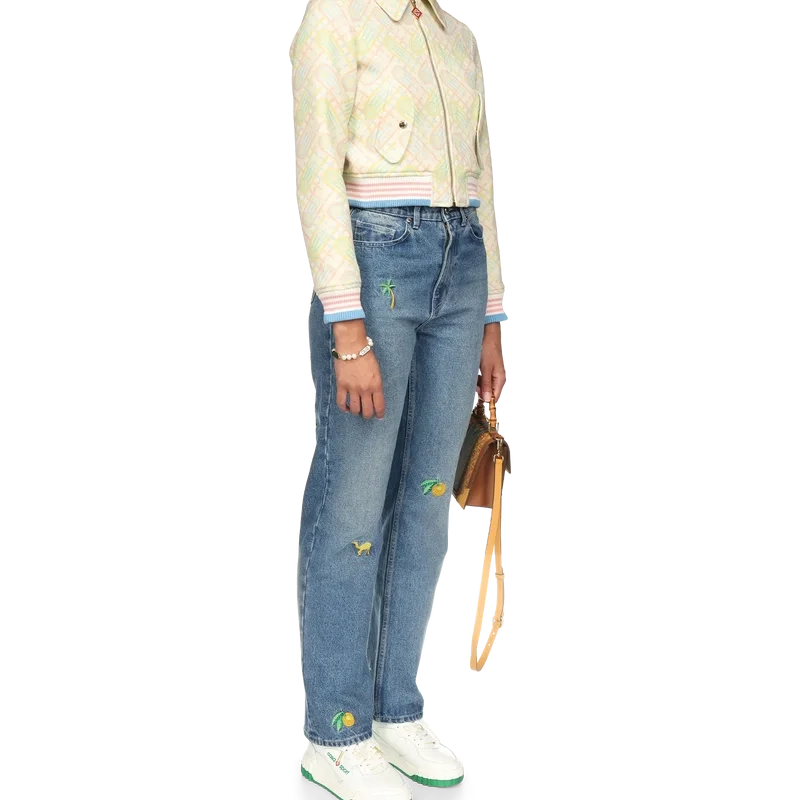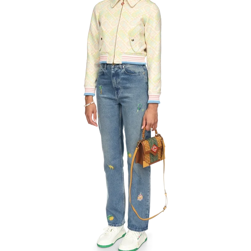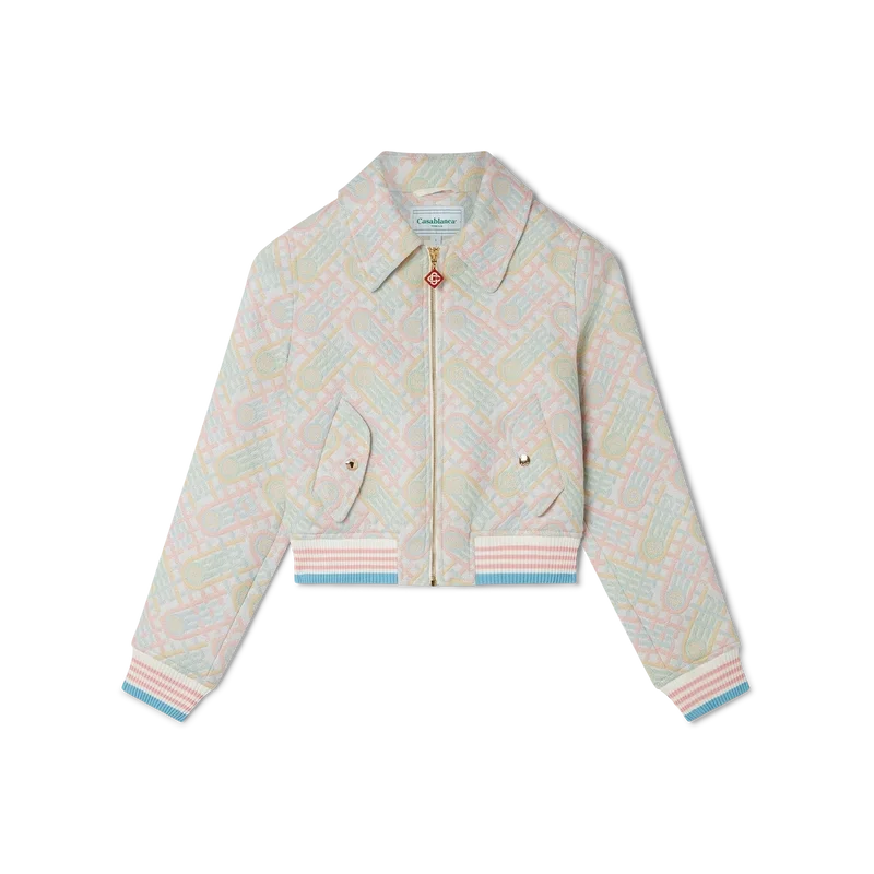 Die Ping-Pong-Bomberjacke ist ein kurz geschnittenes Modell mit langen Ärmeln und einer vertrauten Silhouette, das mit dem charakteristischen Print des Hauses mit einem fliegenden Ping-Pong-Ball verziert ist – aus der Japan-Kollektion. Sie ist aus einem Ping-Pong-Monogramm-Stoff aus Schurwolle gefertigt und verfügt über Vordertaschen mit vergoldeten Beschlägen, kontrastierende Rippbündchen an Saum und Ärmelbündchen, einen Kragen, einen Frontreißverschluss mit Diamant-Logo sowie ein Casablanca-Markenlabel.