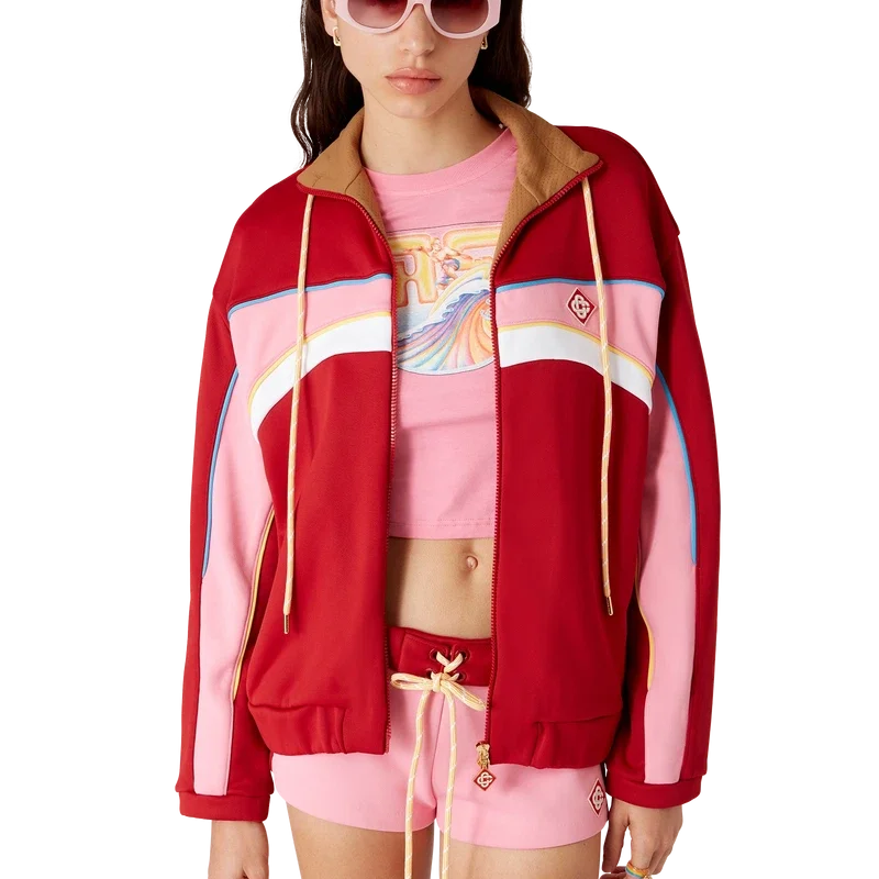 Die Tricot Oversized Trainingsjacke ist ein langärmeliges Sportbekleidungsmodell aus Tricot-Stoff. Mit Stehkragen, Kordelzug, Reißverschluss sowie elastischen Bündchen und Saum.