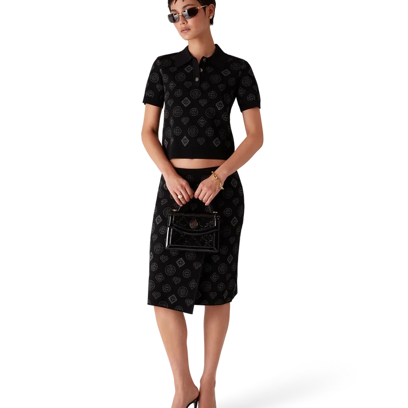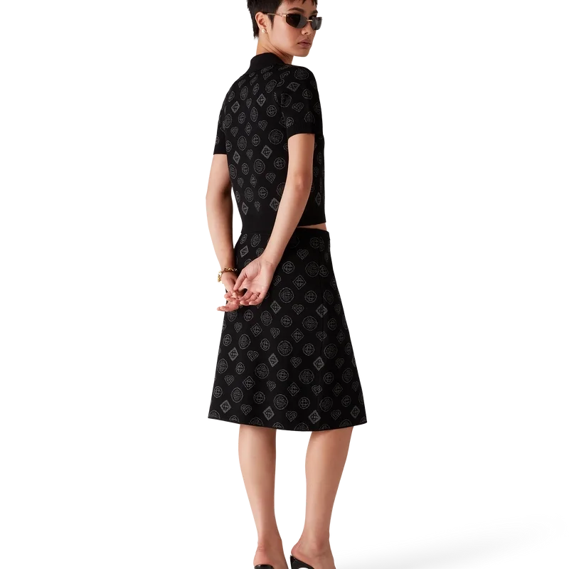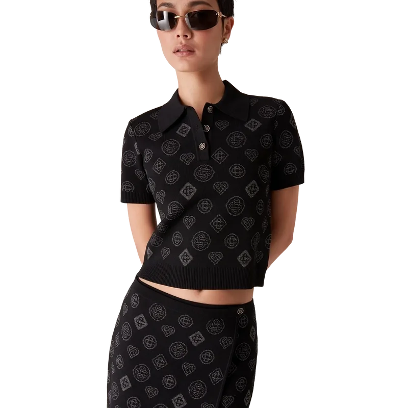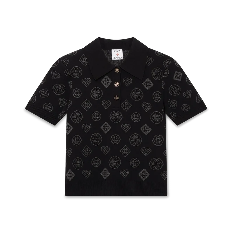 Das Monogram Jacquard Poloshirt ist ein kurzärmeliges Poloshirt mit dem wiederkehrenden Honeydew-Logo des Hauses. Dieses Muster unterscheidet sich von unseren anderen Monogrammen, da es einzigartige Formen zu einem einheitlichen Muster kombiniert. Es handelt sich eher um ein ikonisches Design. Abgerundet durch einen Knopfverschluss, vergoldete Knöpfe mit dem charakteristischen ineinander verschlungenen CC-Logo sowie einen gerippten Kragen, Manschetten und Saum.