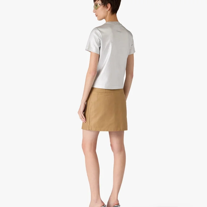 Der beigefarbene Baumwoll-Minirock mit Taschen ist ein raffiniertes A-Linien-Modell aus strapazierfähigem Baumwoll-Drillich in einem warmen Beigeton. Mit Bund, Gürtelschlaufen, Reißverschluss, vergoldeten Metallbeschlägen, funktionalen aufgesetzten Taschen und einer strukturierten Silhouette.