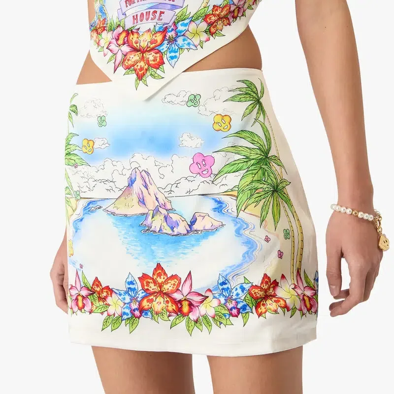 Der Better Days Seidensatin-Minirock ist ein raffiniertes A-Linien-Design mit dem saisonalen Better Days-Motiv, das die utopische Vision von Ibiza als Ziel einer fast religiösen Entdeckungsreise durch seine vielfältige Musiklandschaft beschreibt. Mit Reißverschluss und schmaler Silhouette – entworfen, um mit dem passenden Schal-Oberteil getragen zu werden.