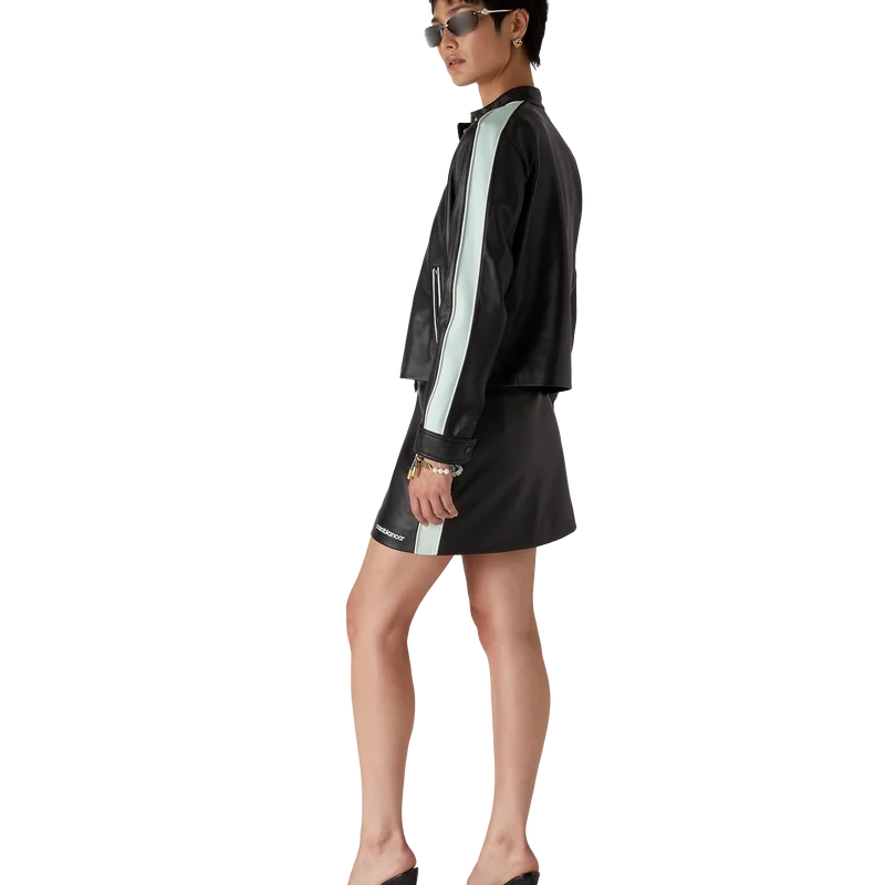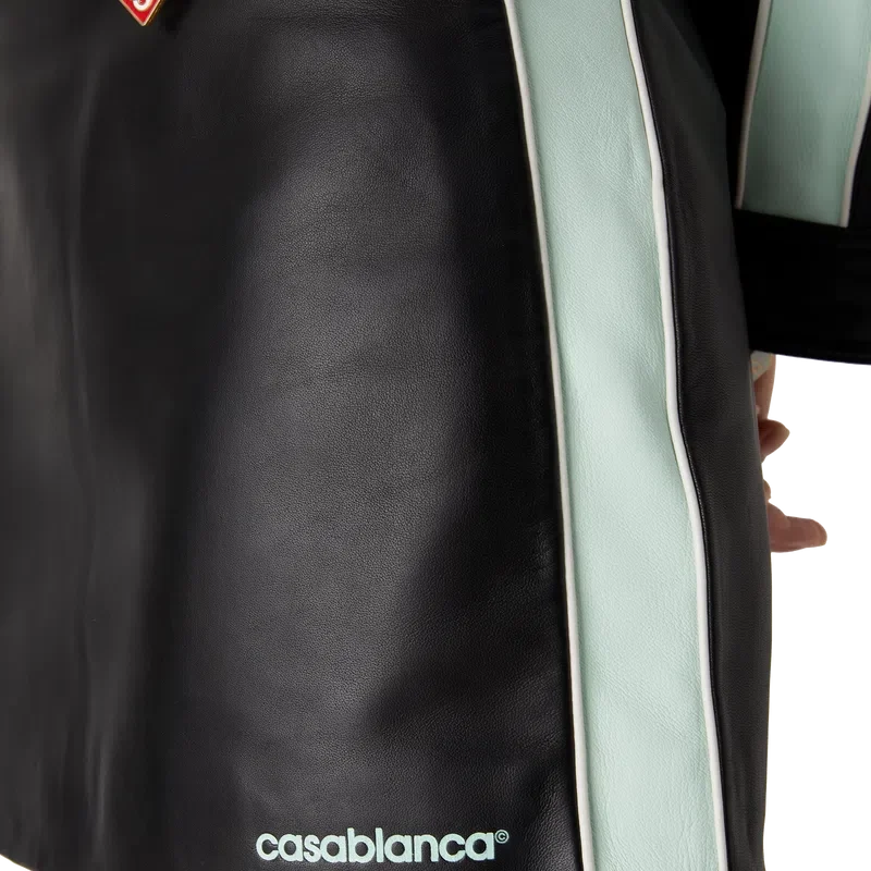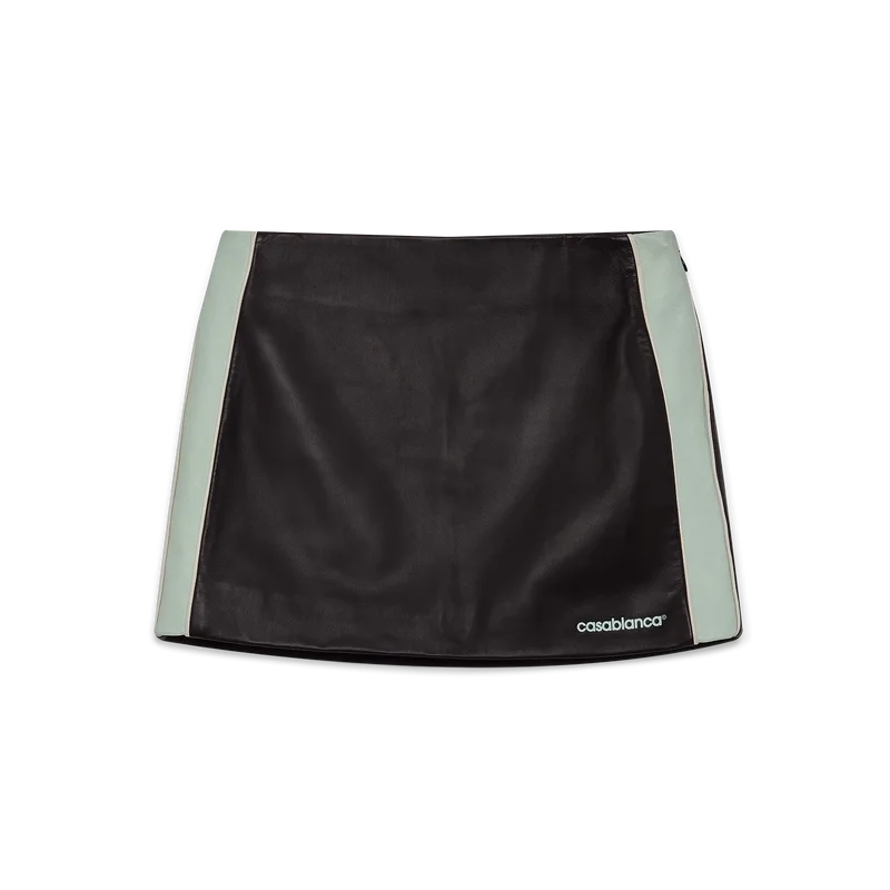 Der Leder-Minirock ist ein figurbetontes Minirock-Design aus Lamm-Nappa. Abgerundet durch einen Bund, Streifendetails an den Seiten und das „Casablanca“-Logo des Hauses am Saum.