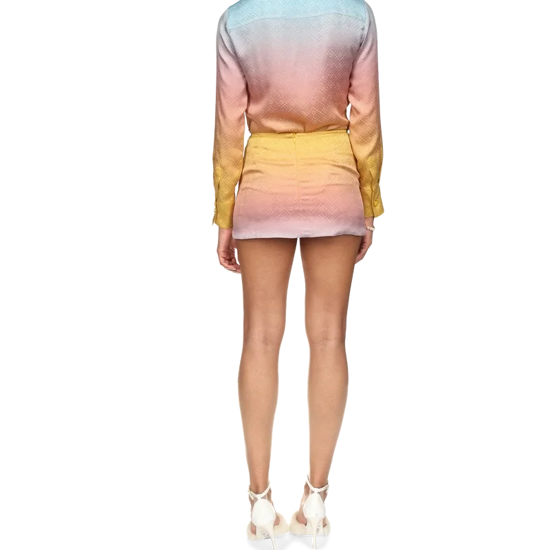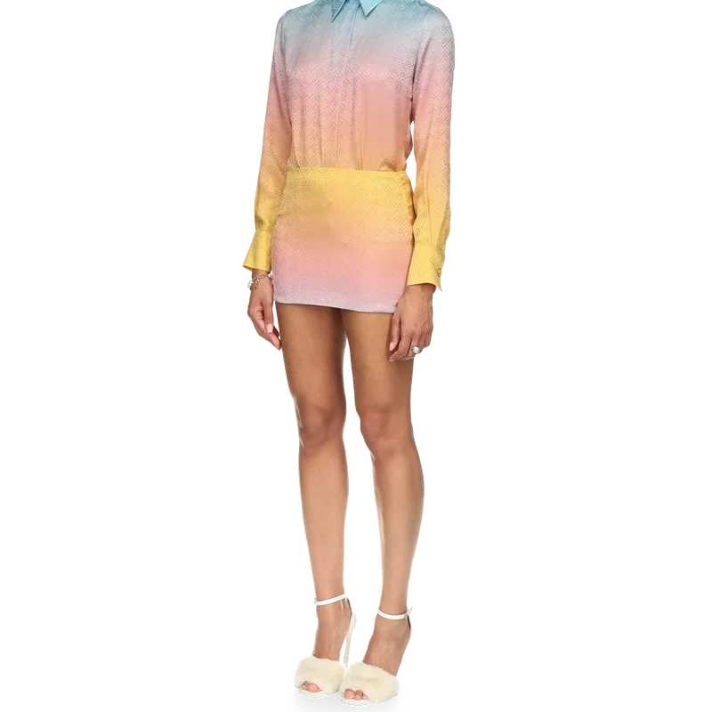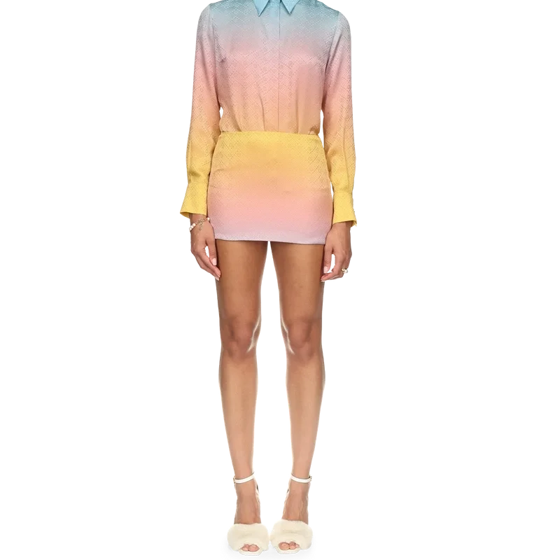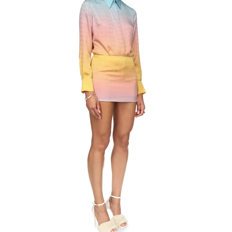 Der Ping Pong Gradient Seidenrock ist ein klassischer Minirock mit einem Allover-Print aus fliegenden Tischtennisbällen, der aus der Japan-Kollektion des Hauses stammt. Das aus Seidentwill gefertigte Modell verfügt über einen Reißverschluss und ein Casablanca-Markenlabel – ideal zum Kombinieren mit dem Ping Pong Gradient Seidenhemd.