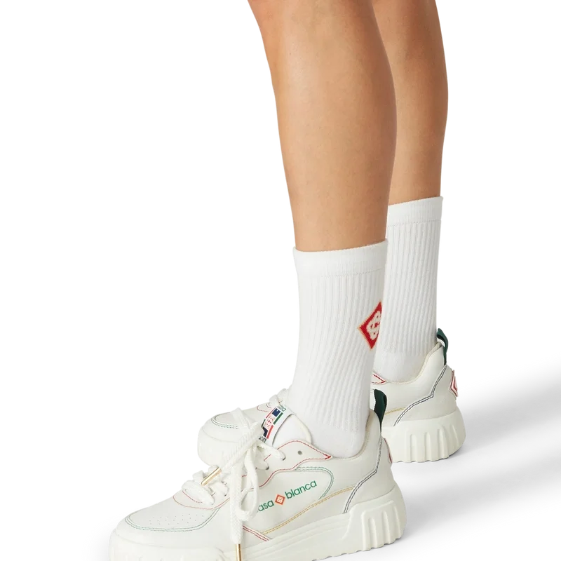 Das Design des Court Sneakers spiegelt die ikonischen Silhouetten der 90er Jahre wider. Die Farben der Gummisohle sind eine Kombination aus den raffinierten Codes des Tennis und der klassischen Architektur und schaffen eine einheitliche Farbpalette für den gesamten Schuh, wobei der Fokus auf Primärfarben liegt, die durch Tennisweiß abgesetzt werden, um eine sportlich orientierte Farbgeschichte zu schaffen. Obermaterial aus weißem Leder im Ton-in-Ton-Look Casablanca-Diamant-Gummiaufnäher an der Ferse Casablanca-Sport-Logo aus Silikon an der Seite Gewebtes Court-Zungenlabel Von Tennisplätzen inspirierte Außensohle in von Tennis inspirierten Primärfarben Goldene Schnürsenkelenden Zölle und Abgaben Bitte beachten Sie, dass für Kunden außerhalb der EU bei der Lieferung Einfuhrzölle und Steuern anfallen können. Bitte erkundigen Sie sich vor dem Kauf bei der Zollbehörde Ihres Landes, um die für Sie geltenden Einfuhrzölle und Steuern zu ermitteln. Wenn Sie zwischen zwei Größen liegen, empfehlen wir Ihnen, die kleinere Größe zu wählen.