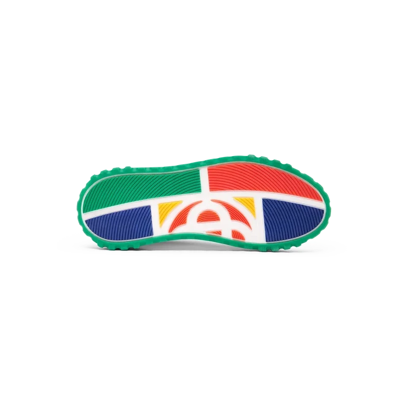 Die Designsprache des Court Sneakers spiegelt die ikonischen Silhouetten der 90er Jahre wider. Die Farben, die sich über die gesamte Gummisohle ziehen, sind eine Kombination aus den raffinierten Codes des Tennis und der klassischen Architektur und schaffen eine einheitliche Farbpalette im gesamten Schuh, wobei der Fokus auf Primär- und Sekundärfarben liegt, die durch Tennisweiß abgesetzt werden, um eine sportorientierte Farbgeschichte zu schaffen.