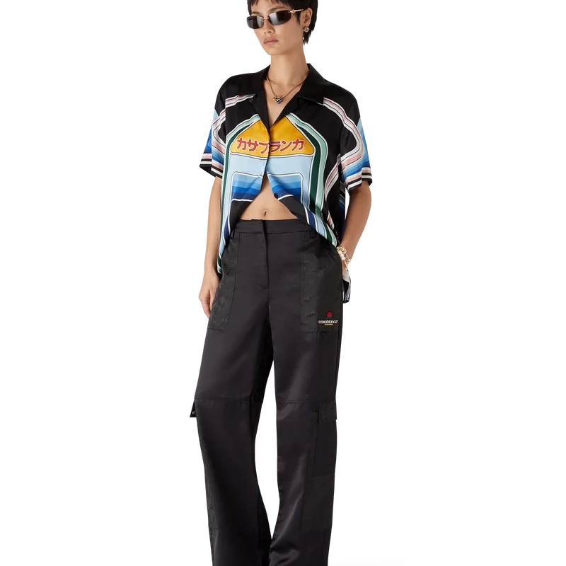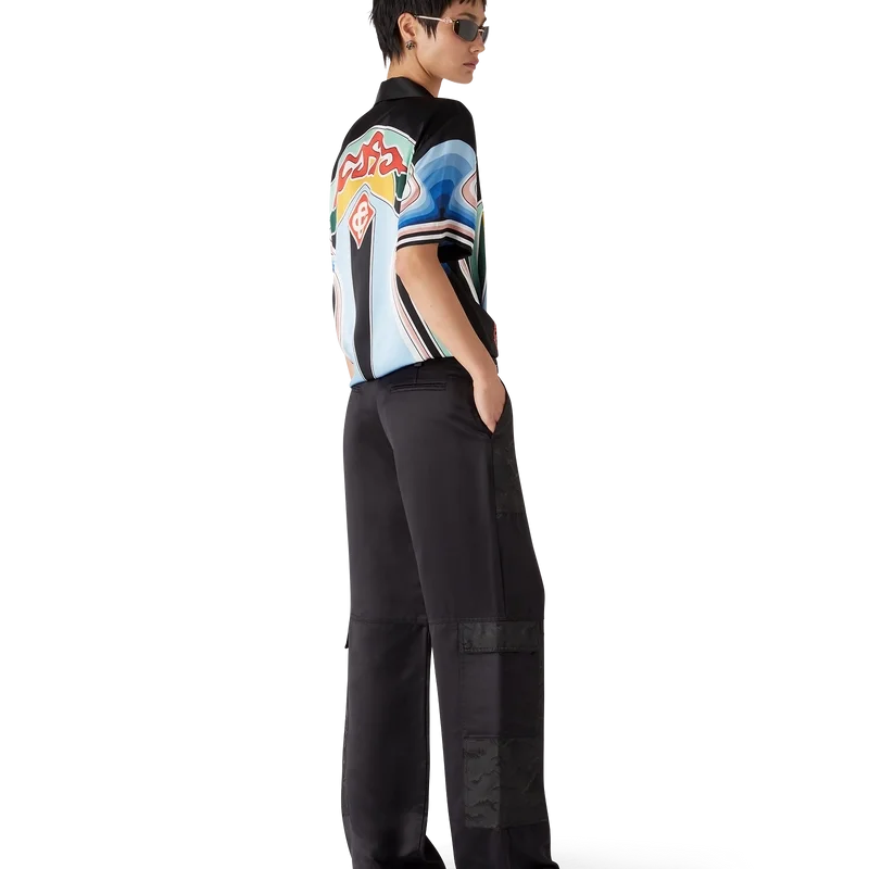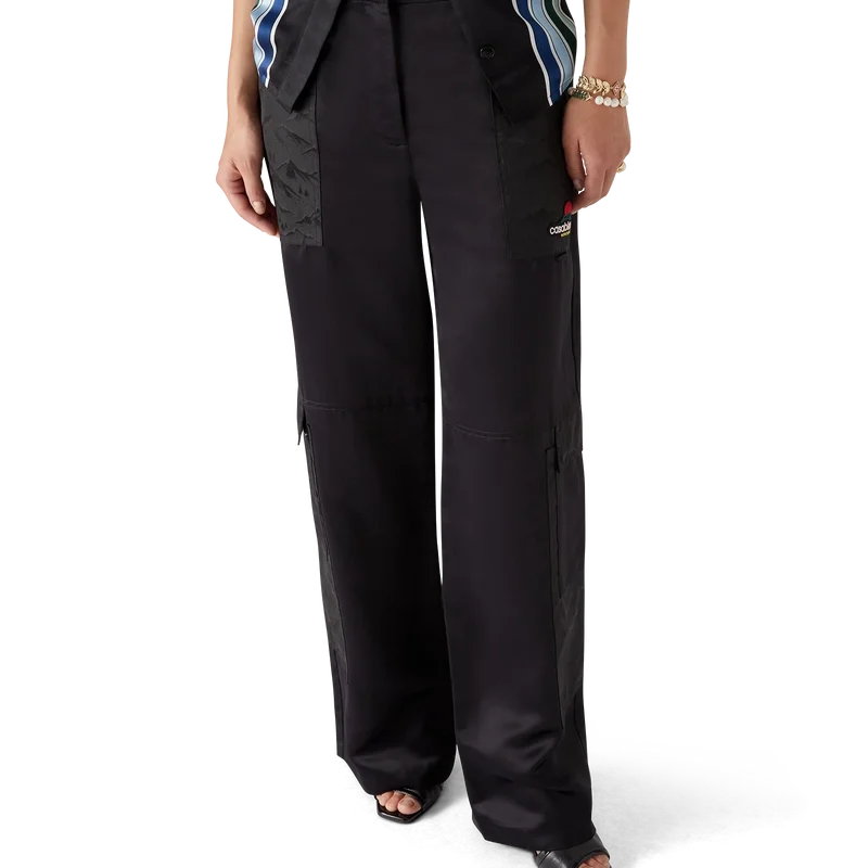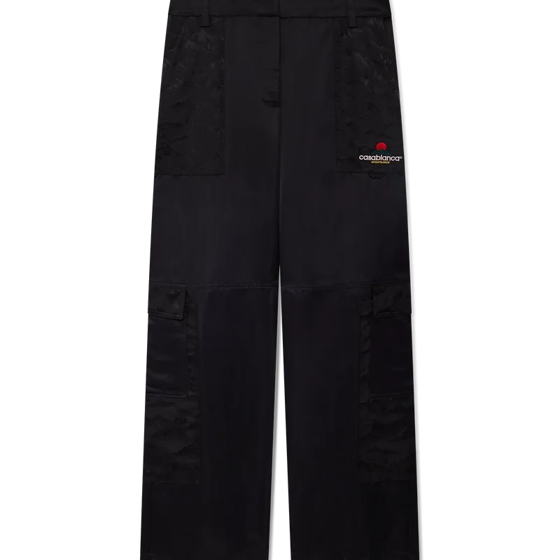 Die Cargo-Hose aus Nylon und Satin im Mountain-Camo-Design hat einen geraden Schnitt und ist mit dem charakteristischen Diamond Monogram des Hauses verziert. Abgerundet wird das Design durch Einsätze an jedem Oberschenkel, vergoldete Metallbeschläge, schräge Vordertaschen, aufgesetzte Gesäßtaschen, einen Reißverschluss und Gürtelschlaufen.