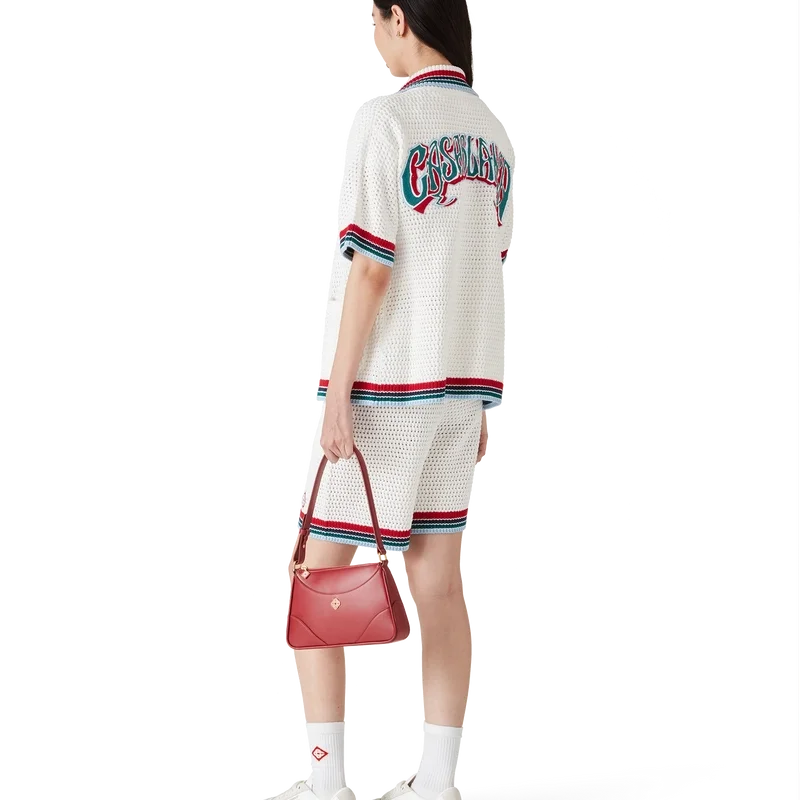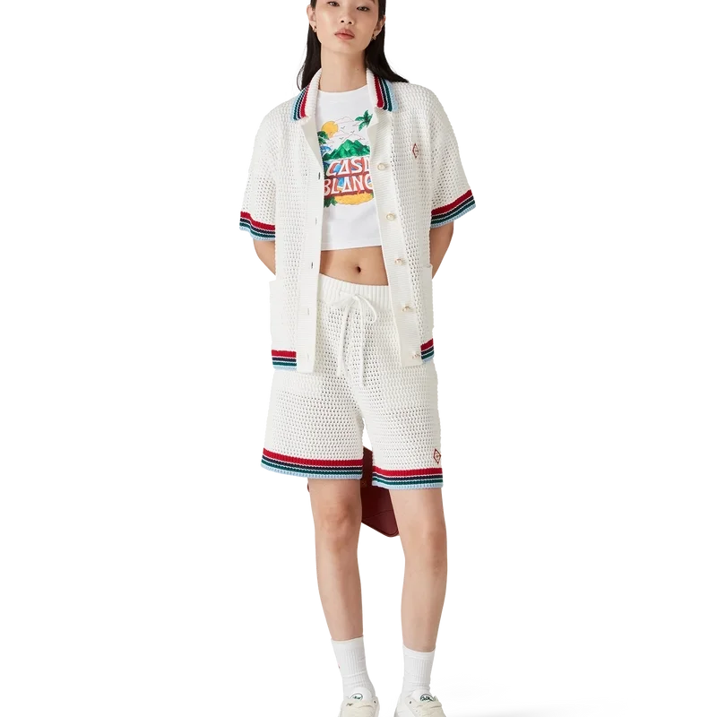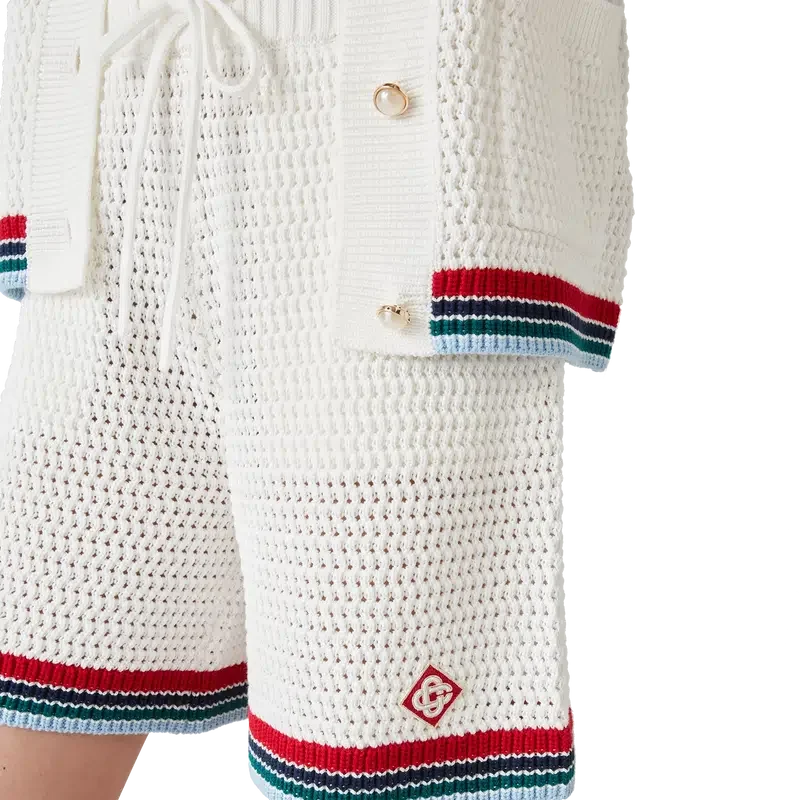 Die Gothic Crochet Shorts sind ein Design mit weicher Struktur aus gestricktem Baumwollstoff und tragen das charakteristische Rautenlogo des Hauses. Mit geripptem, elastischem Bund mit Kordelzug, Seitentaschen und kontrastierenden Streifen am Saum veredelt.