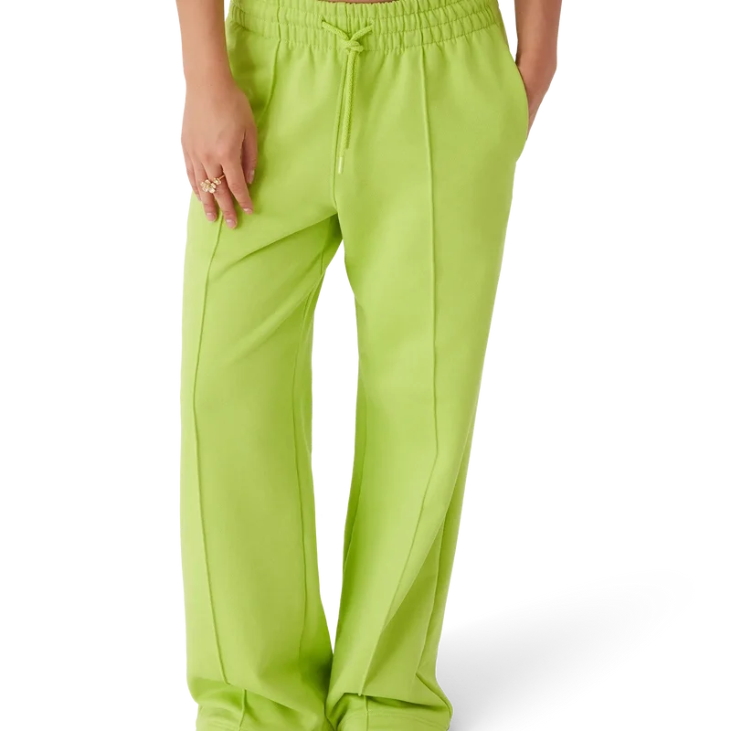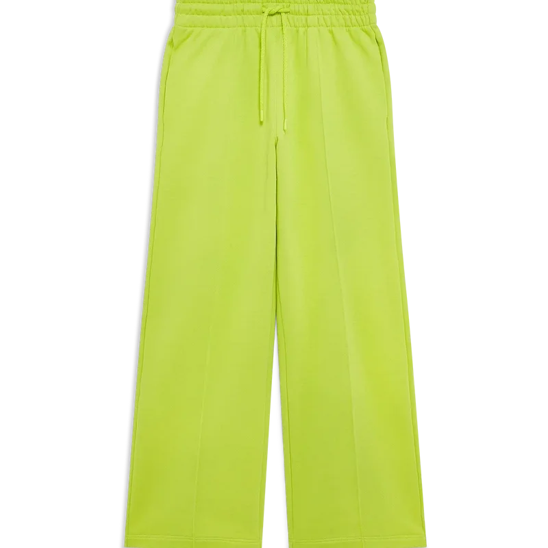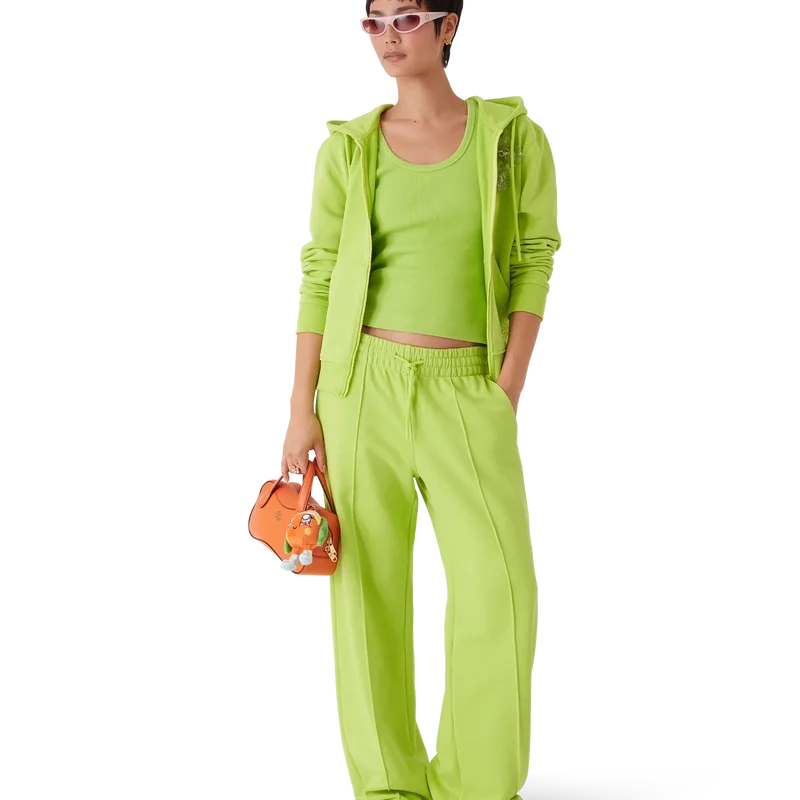 Die Sweathose mit offenem Saum ist ein Sportbekleidungsmodell aus Bio-Baumwollstoff in Limettengrün mit zwei abnehmbaren Blumenbroschen. Abgerundet durch einen elastischen Bund, einen Kordelzug, Biesen an der Vorderseite, Eingrifftaschen und eine aufgesetzte Gesäßtasche mit Diamond Monogram-Stickerei.
