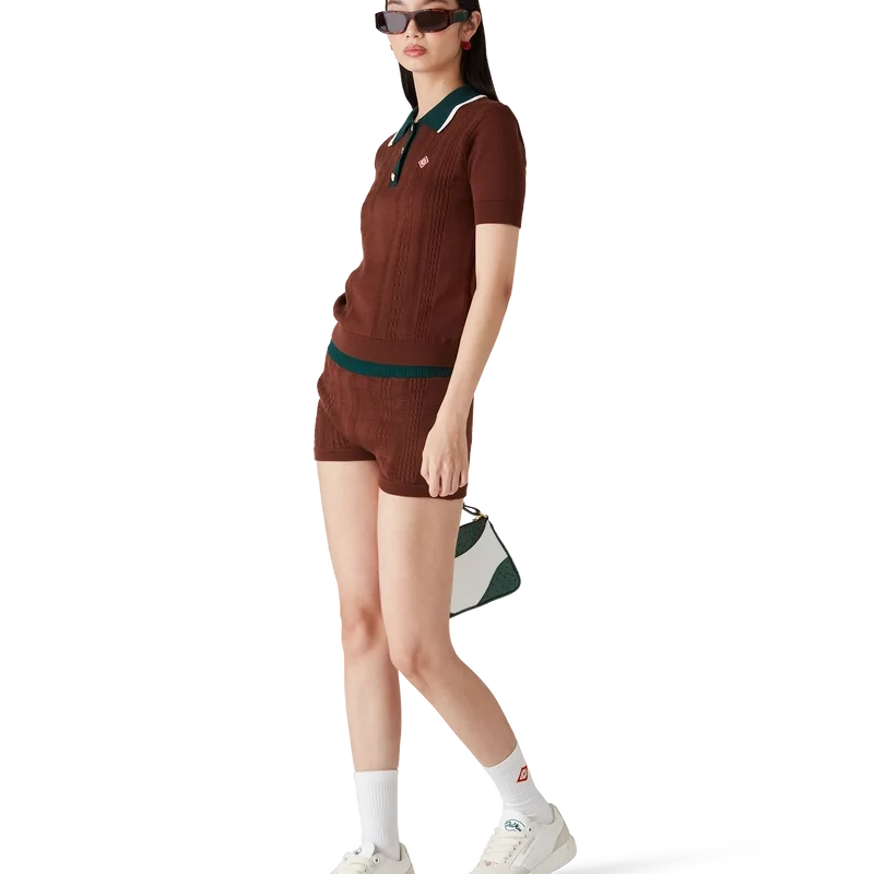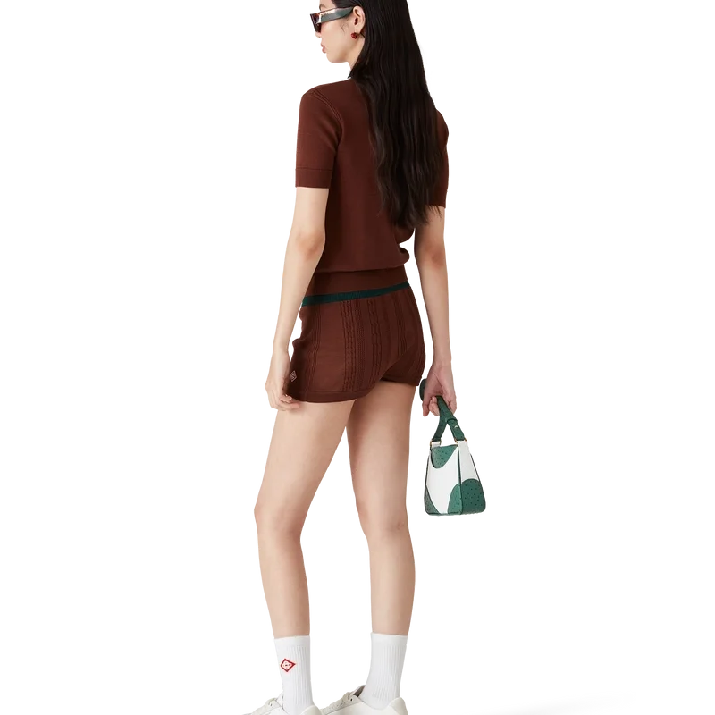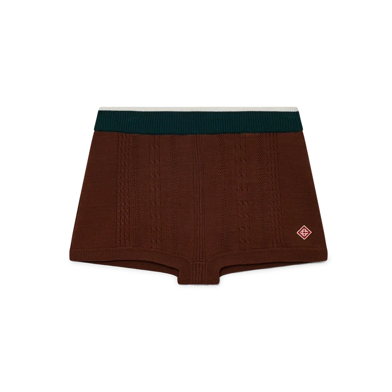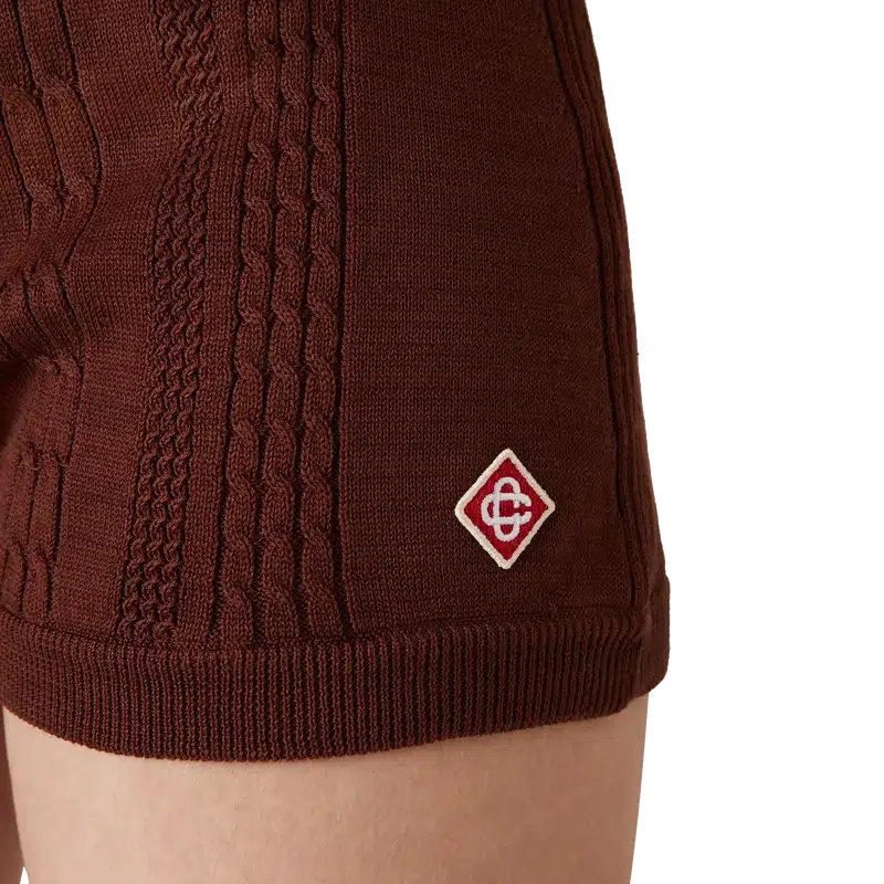 Die Mini-Shorts im Zopfmuster sind aus gestricktem Baumwollstoff gefertigt und mit dem charakteristischen Rautenlogo des Hauses versehen. Abgerundet durch einen kontrastierenden gerippten Bund mit weißen Kanten. Entworfen, um mit dem passenden Poloshirt im Zopfmuster getragen zu werden.