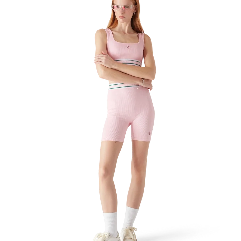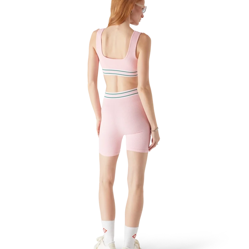 Die Shorts der Marke Casablanca zeichnen sich durch ein stromlinienförmiges, von Sportbekleidung inspiriertes Design mit dem charakteristischen Diamant-Logo-Patch des Hauses aus. Sie sind aus einem nahtlosen Stretchstoff gefertigt und bieten eine raffinierte Silhouette mit minimalistischer Konstruktion. Abgerundet werden sie durch einen vorteilhaften Schnitt, einen elastischen Bund mit dem Casablanca-Logo des Hauses und Streifendetails.