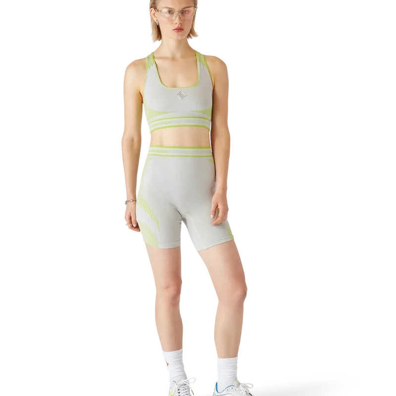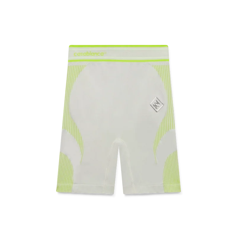 Das nahtlose Design besteht aus technischem Stoff mit dem silbernen Casablanca-Diamant-Logo und einem elastischen Bund. Abgerundet durch eine raffinierte, sportliche Konstruktion. Die nahtlosen Shorts haben ein stromlinienförmiges, von Sportbekleidung inspiriertes Design mit dem charakteristischen Diamant-Logo-Patch. Sie bestehen aus einem nahtlosen Stretchstoff und bieten eine raffinierte Silhouette mit minimalistischer Konstruktion. Abgerundet durch einen vorteilhaften Schnitt, einen elastischen Bund mit dem Casablanca-Logo des Hauses und Streifendetails.