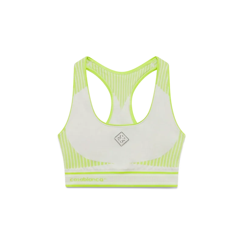 Der nahtlose Sport-BH ist ein ärmelloses, von Sportbekleidung inspiriertes Design mit dem charakteristischen Diamond Monogram des Hauses in der Mitte. Dieses Modell ist aus einem nahtlosen, gerippten Stretchstoff gefertigt und verfügt über ein elastisches Band, Träger, einen Racerback und einen Rundhalsausschnitt.
