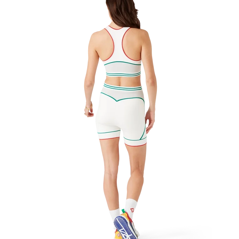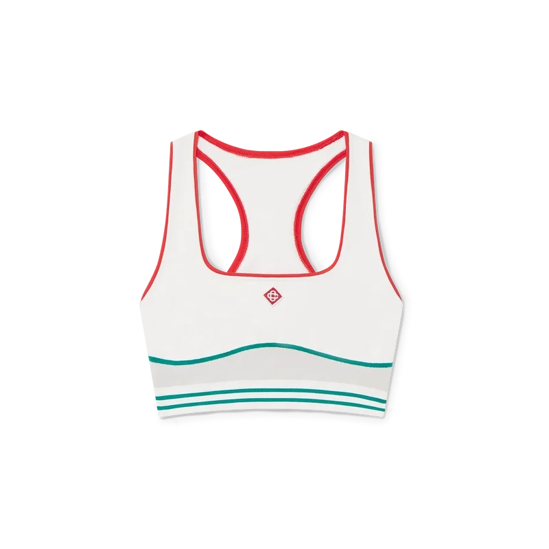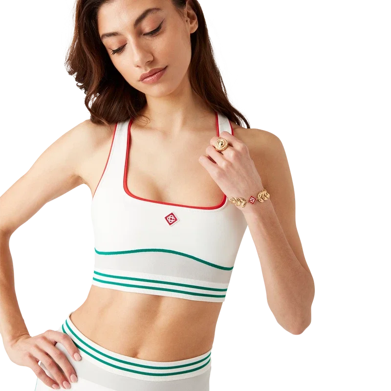 Der nahtlose Sport-BH ist ein ärmelloses, von Sportbekleidung inspiriertes Design mit dem charakteristischen Diamond Monogram des Hauses in der Mitte. Dieses Modell ist aus einem nahtlosen, gerippten Stretchstoff gefertigt, verfügt über ein elastisches Band und ist mit Trägern und einem U-Ausschnitt versehen.