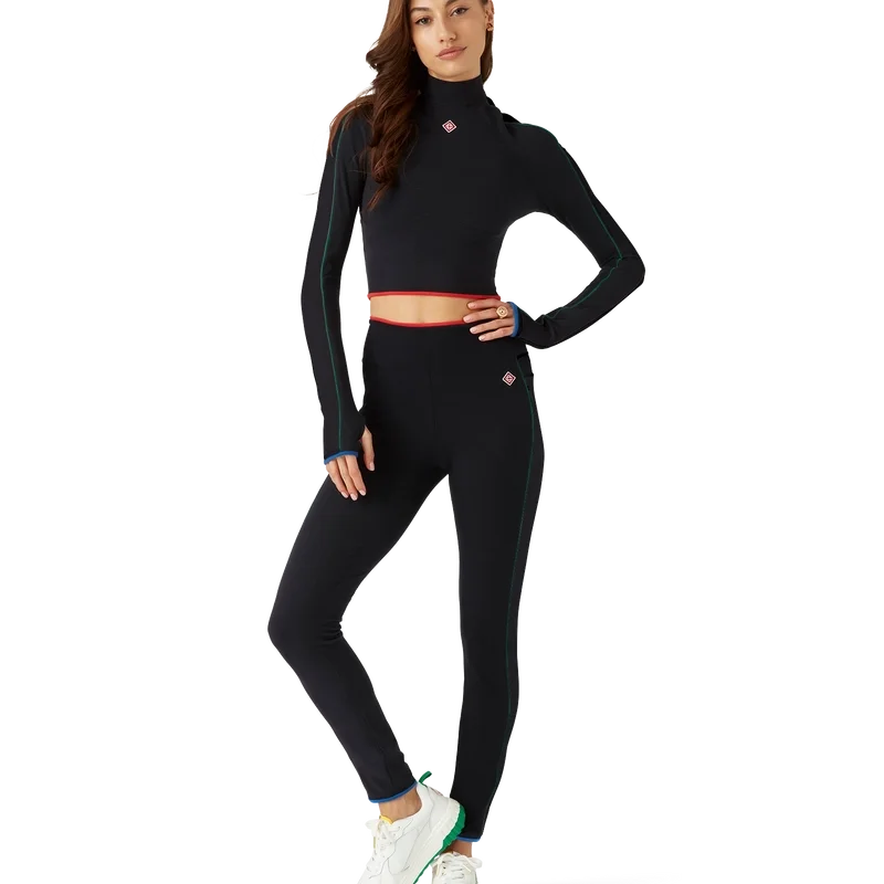 Die Sportleggings sind ein langes Activewear-Modell aus elastischem Sportstoff. Mit dem charakteristischen Diamond Monogram des Hauses, einem Bund mit kontrastierendem Rand und einem weißen Streifen an der Seite.