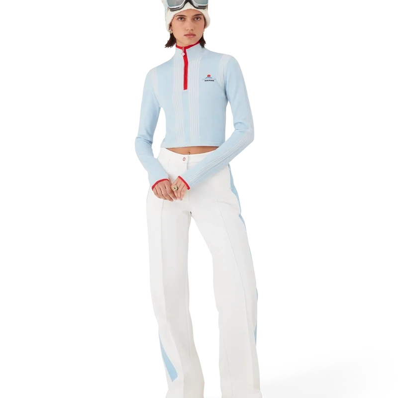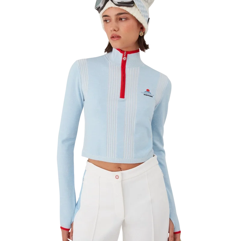 Das Ski Merino Base Layer Crop Top ist ein raffiniertes Apras-Sport-Design aus blauem Merinowollstoff, inspiriert von der tiefen Dämmerung, die über Japans bergige Landschaft hereinbricht. Das Design greift die ruhige Schönheit des Abendlichts auf, das blaue Schatten über schneebedeckte Täler wirft, und verbindet Sport- und Freizeit-Eleganz.