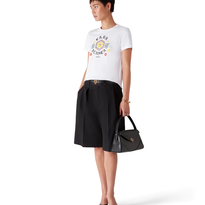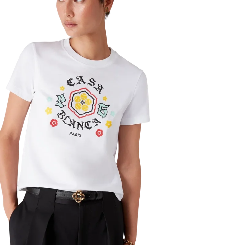Das Emblem Fitted T-Shirt ist ein kurzärmeliges Design mit dem Artwork dieser Saison, bei dem wir uns für eines unserer Hauptthemen von der japanischen Subkultur der BōSōZoku inspirieren ließen. Der Kontrast zwischen grafischen Elementen und Text erinnerte uns sehr an Casablanca. Wir haben unsere eigene Interpretation der BōSōZoku-Kunst geschaffen und dabei Sätze integriert, die die Marke beschreiben, wie zum Beispiel „Looking at the Beauty of the World“. Das Layout ist unkonventionell, aber die Komposition ist sorgfältig ausbalanciert, was dem T-Shirt einen einzigartigen und dennoch harmonischen Charakter verleiht. Abgerundet wird es durch einen klassischen Rundhalsausschnitt.