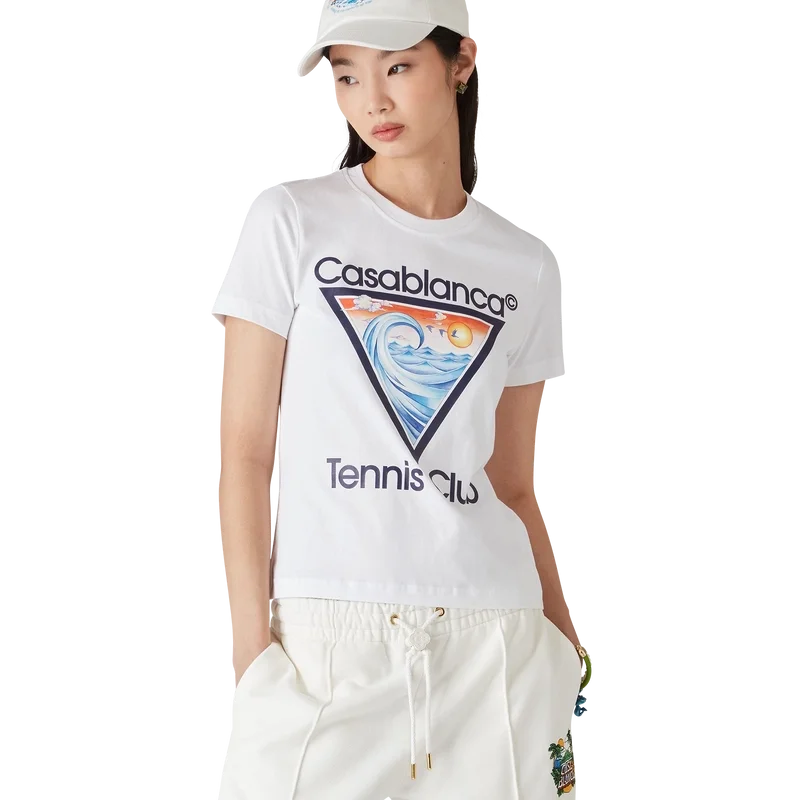 Das Tennis Club Icon T-Shirt ist ein bedrucktes Kurzarm-Modell aus Bio-Baumwolle und präsentiert eine saisonale Interpretation unseres charakteristischen Tennis Club Icon-Motivs mit Designelementen aus Natur, Architektur und Tennis. Abgerundet durch einen klassischen Rundhalsausschnitt.