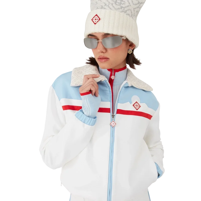 Die Hybrid-Ski-Track-Jacke ist ein raffiniertes Apras-Sport-Design aus technischem, trockenem Stoff in Weiß, inspiriert von der kristallinen Reinheit der japanischen Alpenlandschaft. Angelehnt an den Morgennebel über schneebedeckten Tälern und gefrorenen Seen, in denen sich hoch aufragende Berge spiegeln, zeichnet sich das Design durch eine leistungsorientierte Konstruktion mit Polyesterfutter aus.