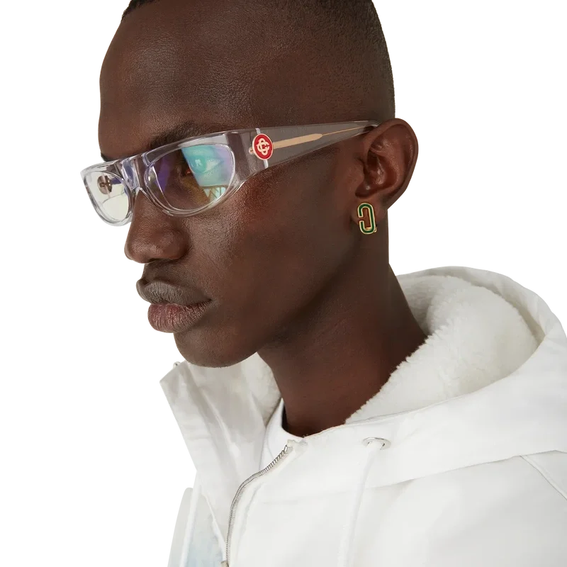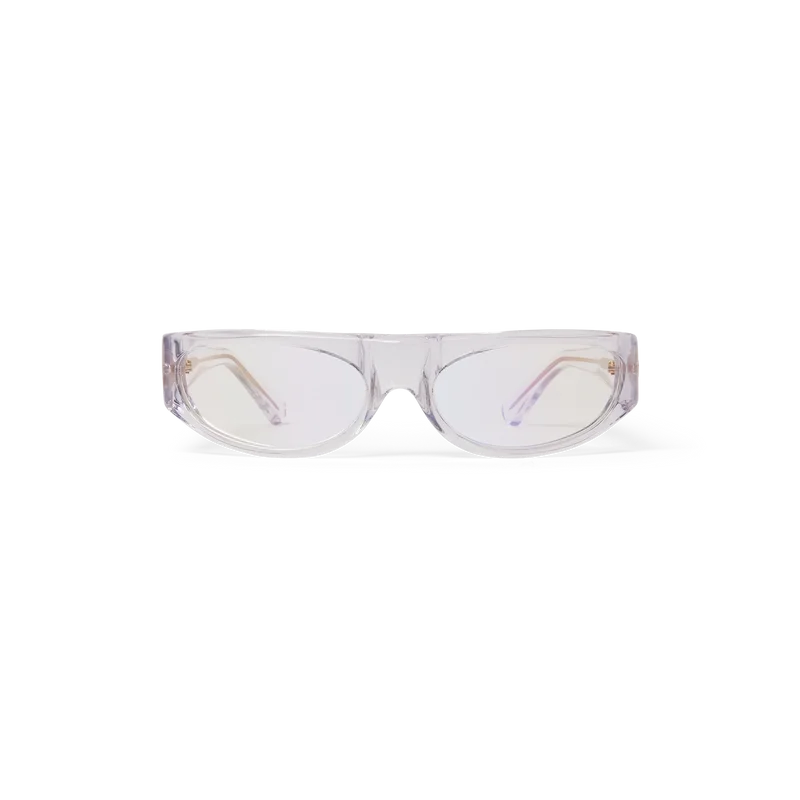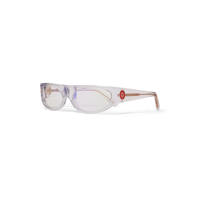 Die Crystal Sport Sonnenbrille verfügt über einen rechteckigen Rahmen aus Acetat. Das Modell ist an den Bügeln mit dem ineinander verschlungenen CC-Logo des Hauses versehen. Die Gläser bieten Schutz vor UV-Strahlung, und das Modell wird komplett mit einem Casablanca-Etui, einem Reinigungstuch und einem Garantieschein geliefert.