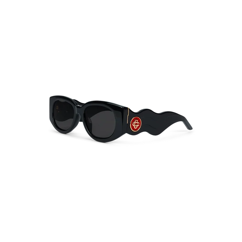 Die markante schwarze Acetatrahmenkonstruktion der Memphis-Sonnenbrille prägt diese rechteckige Sonnenbrille. An den Bügeln befindet sich das charakteristische Casablanca-Diamond Monogram-Logo. Die grauen Verlaufsgläser bieten 100 % UV-Schutz, und das Set wird durch eine Casablanca-Box, ein Brillenputztuch und eine Garantiebroschüre abgerundet.