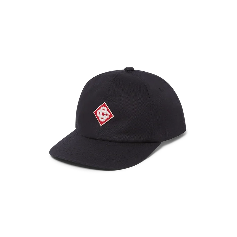 Die Logo-Patch-Kappe ist eine klassische Baseballkappe mit dem Diamant-Logo des Hauses in der Mitte. Die aus 100 % Baumwolle gefertigte Kappe verfügt über einen Schirm, eine vergoldete, verstellbare Schnalle und ein Casablanca-Markenlabel.