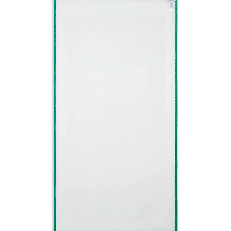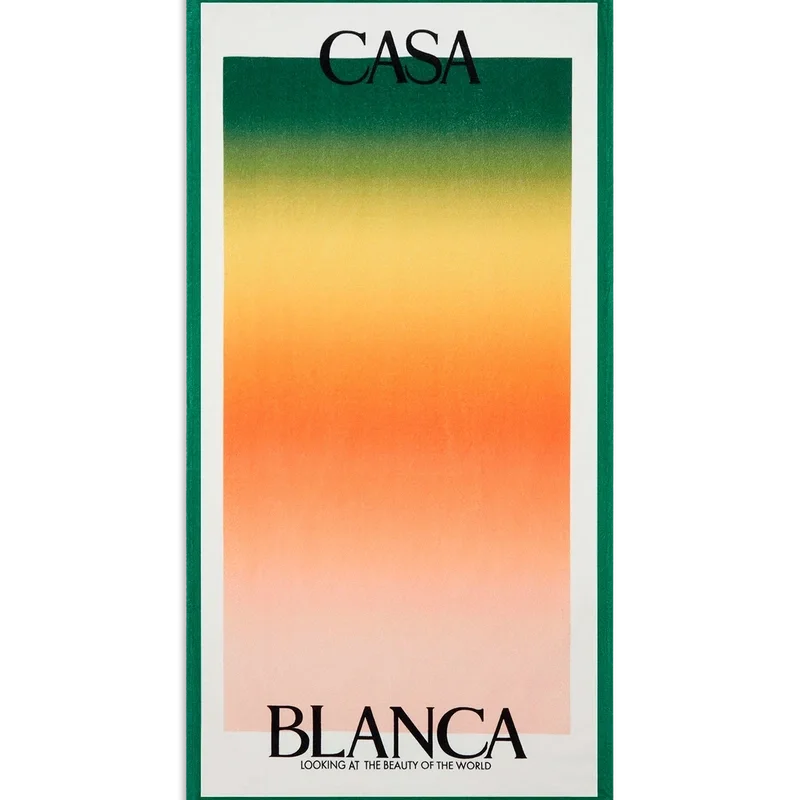 Das Strandtuch „Gradient“ ist aus Bio-Baumwolle gefertigt und zeigt das gestapelte Logo des Hauses vor einem Hintergrund mit dem saisonalen Farbverlauf, der den reichen Austausch zwischen den kulturellen Disziplinen in der afrikanischen Kunst, Musik und Film symbolisiert. Abgerundet wird das Design durch einen weißen Rahmen und grüne Ränder.