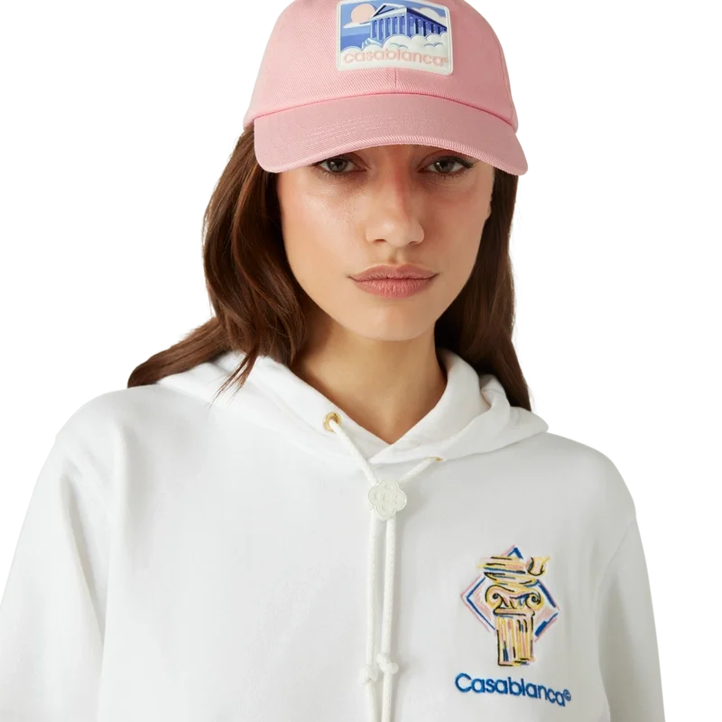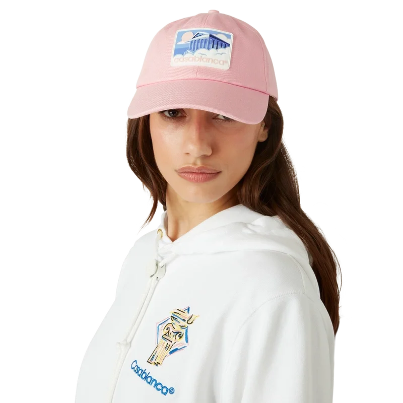 Die Greek Temple Cap ist eine klassische Baseballkappe aus Baumwollstoff mit einem Silikon-Aufnäher mit saisonalem Motiv. Abgerundet durch einen Schirm und eine vergoldete, verstellbare Schnalle.