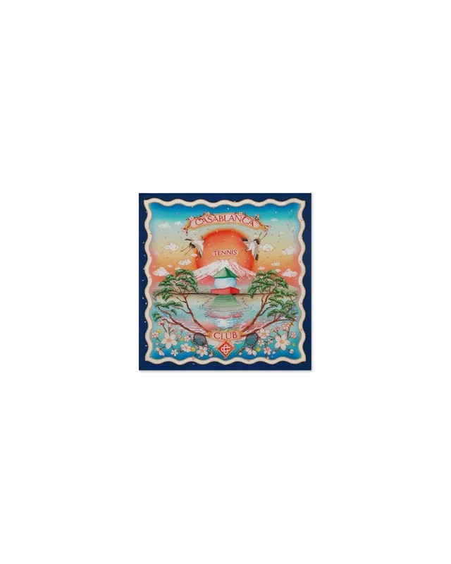 Der mittelgroße Seidenschal „Tennis Club“ ist ein bedrucktes Design aus Seidentwill, das das charakteristische Kunstwerk des Hauses in unserem klassischen Layout, jedoch mit traditioneller japanischer Kunst, zeigt und ihn so zu einem Stück mit starker Erzählkraft macht. Abgerundet durch einen blau-weiß gestreiften Wellenrand.