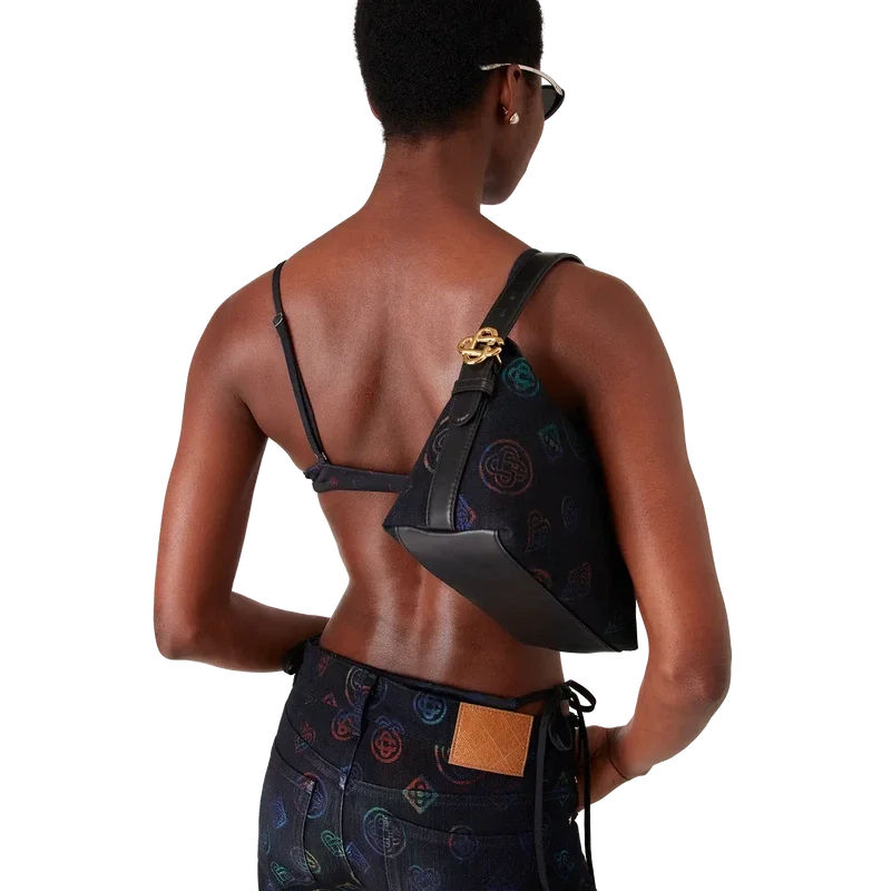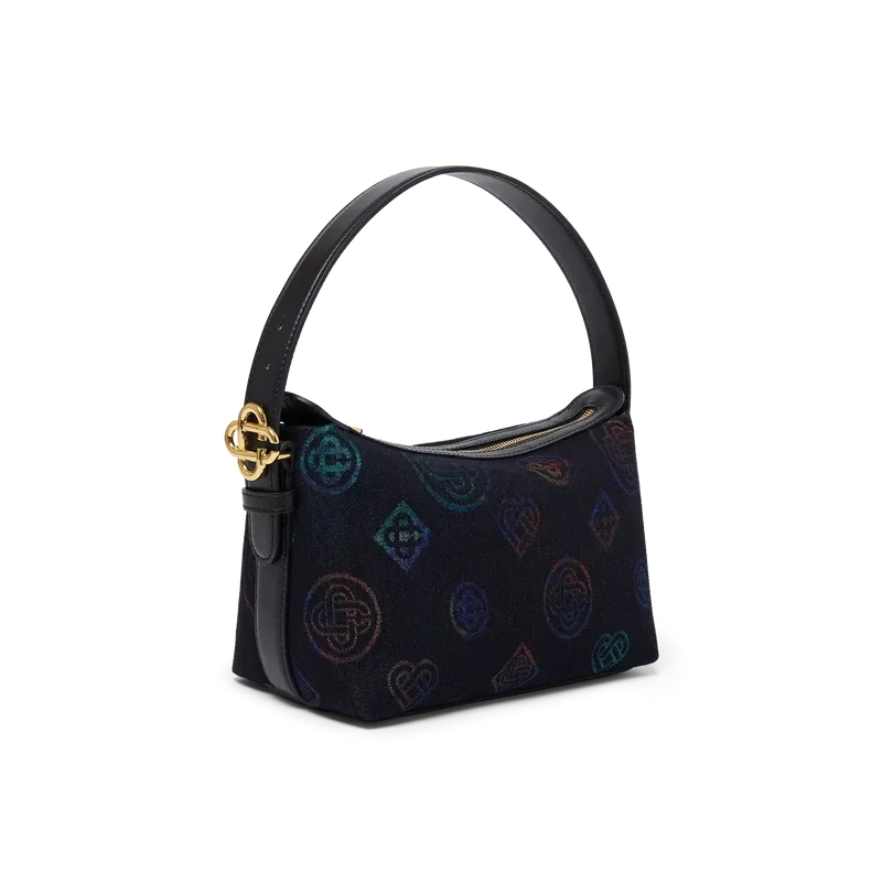 Die Logo-Tasche aus blauem Denim und Leder besticht durch ein raffiniertes Design mit dem ineinander verschlungenen CC-Logo des Hauses und einer Schultertaschen-Silhouette. Mit Lederriemen und hochwertigen vergoldeten Metallbeschlägen