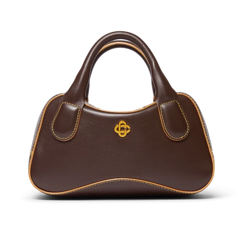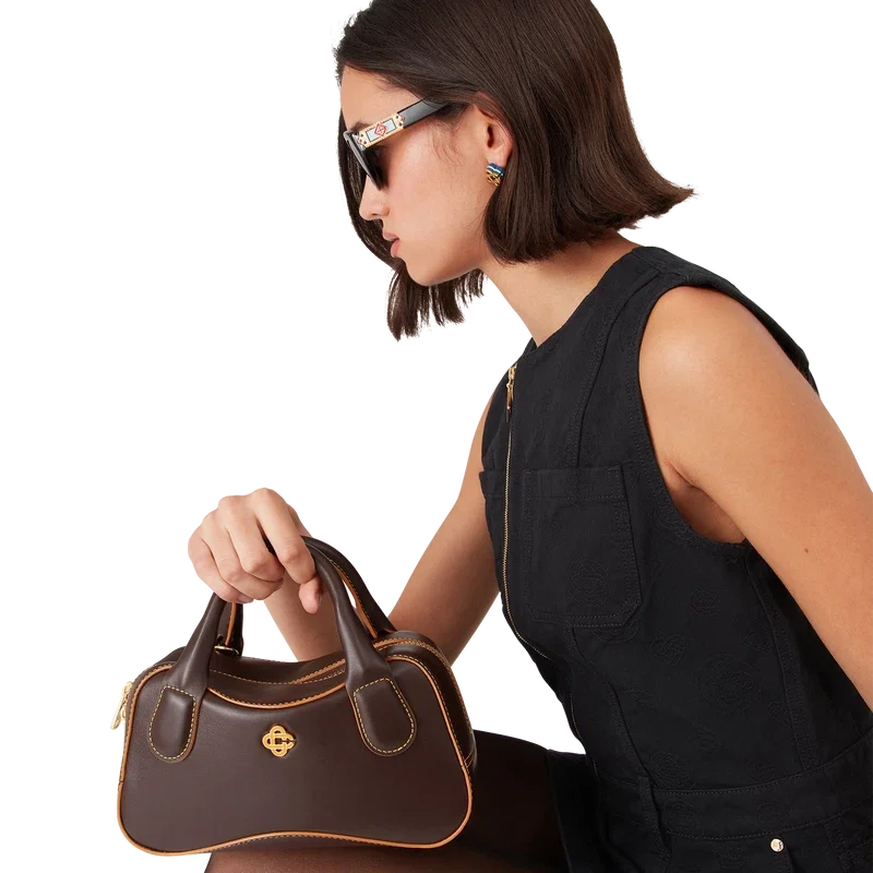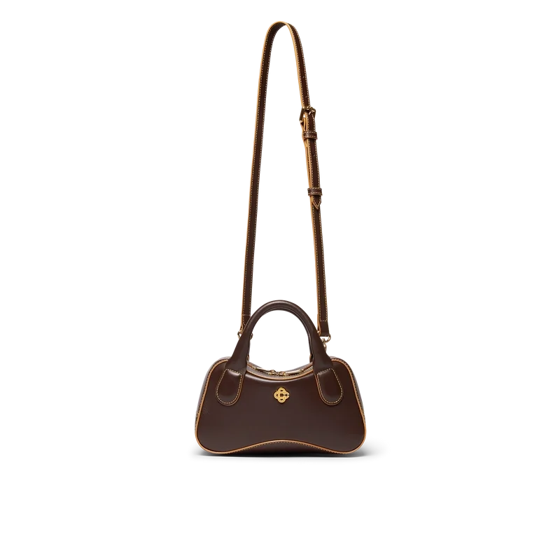 Die braune Louise Micro-Tasche ist aus italienischem Kalbsleder gefertigt und mit dem ineinander verschlungenen CC-Logo des Hauses auf hochwertigen Metallbeschlägen verziert. Ausgestattet mit Reißverschluss, einem verstellbaren, abnehmbaren Riemen, zwei Tragegriffen und einer Innentasche. Wird mit einem Staubbeutel mit Casablanca-Logo, einer Geschenkbox und einer Produktbeschreibung geliefert.