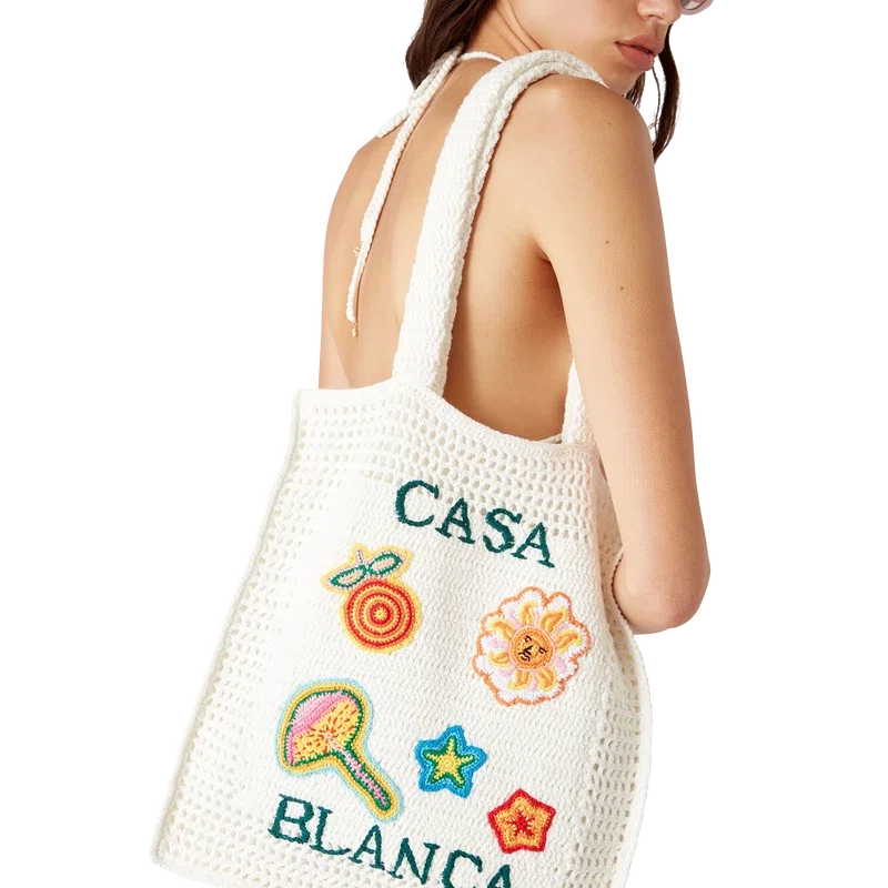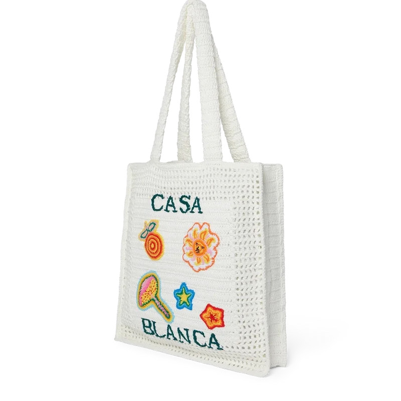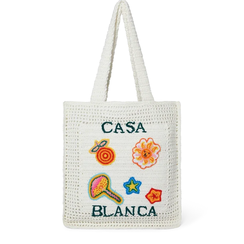 Die Motif Crochet Bag ist eine gestrickte Tasche aus gehäkelter Baumwolle und zeichnet sich durch eine lockere Silhouette aus. Abgerundet wird sie durch ein gesticktes, übereinanderliegendes Logo, klassische Designelemente und Riemen, mit denen die Tasche als Tote-Bag über der Schulter oder in der Hand getragen werden kann.