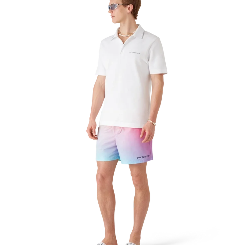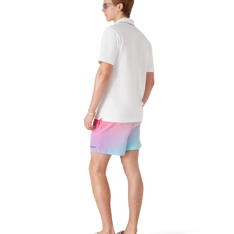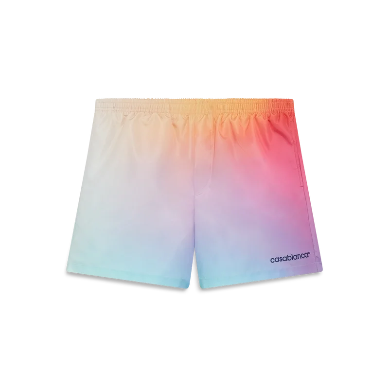 Die Badeshorts mit Farbverlauf sind ein raffiniertes Design, das die Farbverlaufs-Farben der Saison aufgreift. Sie verfügen über einen elastischen Bund, einen integrierten Kordelzug, Seitentaschen in den Beinen, ein Futter, einen gestreiften Saum sowie das Warped-Logo des Labels.