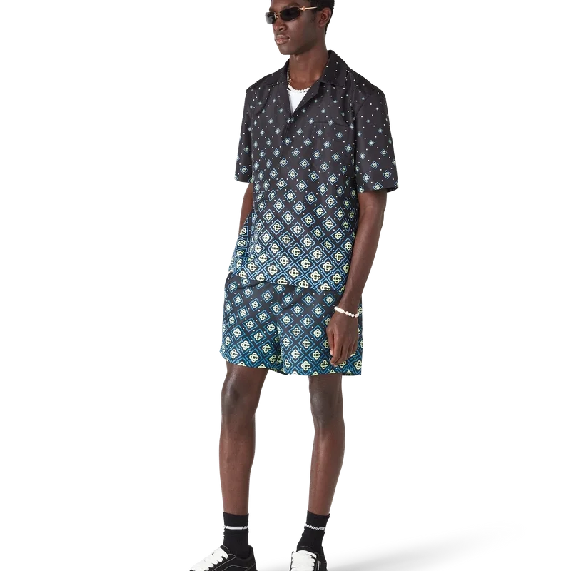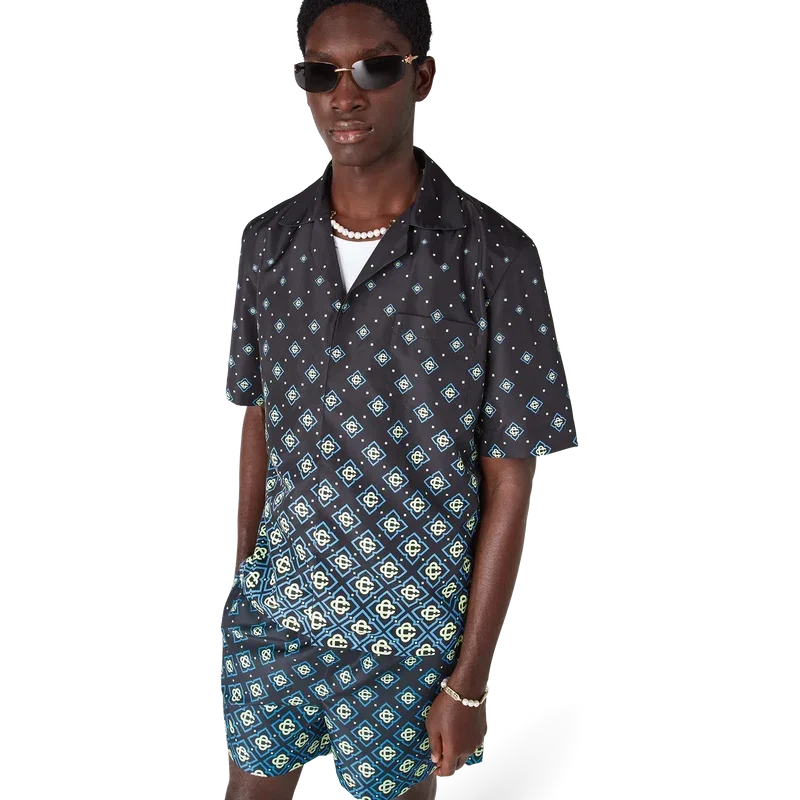 Das Degrade Black Monogram Swim Shirt ist ein raffiniertes technisches Design mit dem Monogramm-Muster des Hauses. Es besticht durch eine Konstruktion aus technischem Schwimmstoff, kurze Ärmel, einen Knopfverschluss, Corozo-Knöpfe mit ineinander verschlungenem CC-Logo und raffinierte Details, die den gehobenen Ansatz der Marke bei Bademode widerspiegeln.