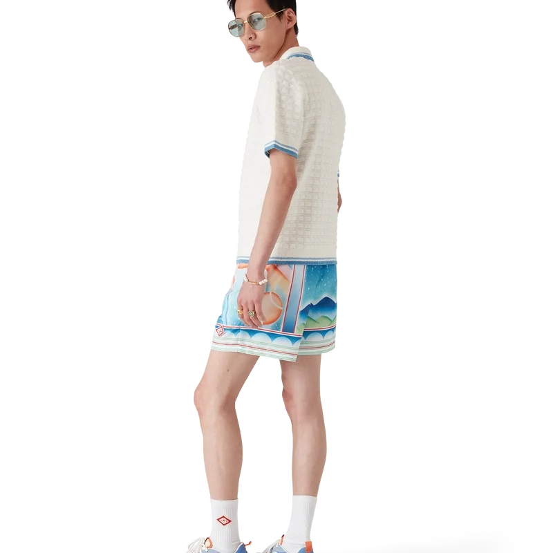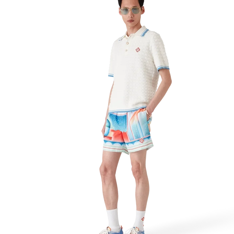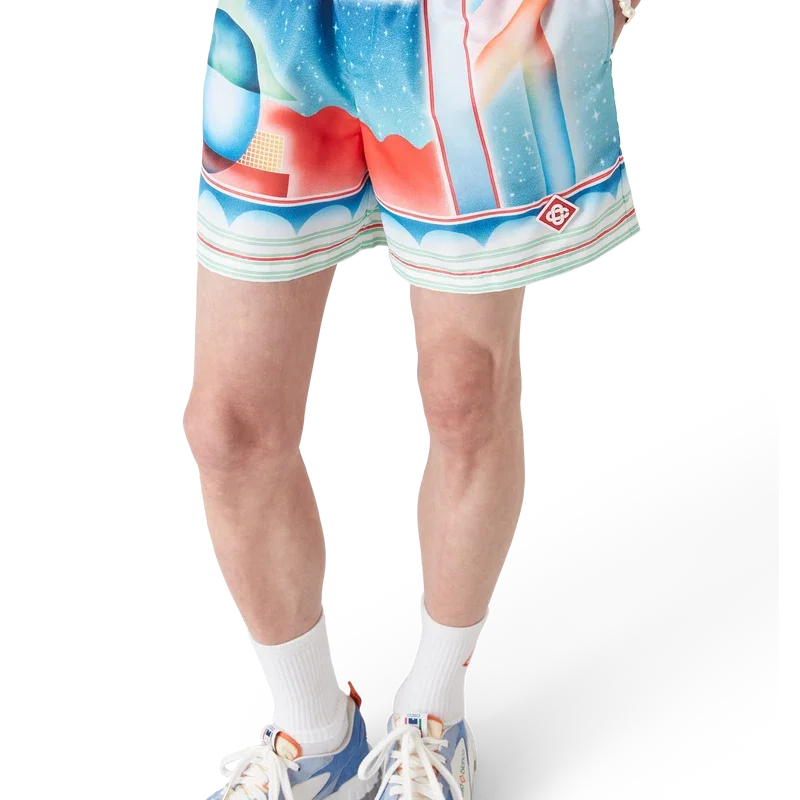 Die Galaxy Court Shorts sind ein durchgehend bedrucktes Design mit dem charakteristischen Motiv des Hauses und einem unserer Embleme. Es greift erneut unser klassisches Layout auf, kombiniert jedoch saisonale Elemente und bringt so das Tennisthema in die Kollektion ein. Hergestellt aus einem technischen Badestoff. Ausgestattet mit einem elastischen Bund, einem innenliegenden Kordelzug, einer Innentasche, einem Netzfutter und seitlichen Eingrifftaschen in den Beinen.