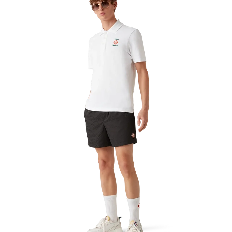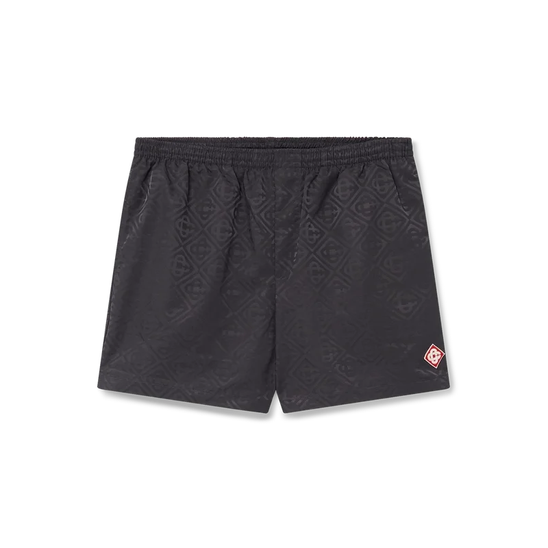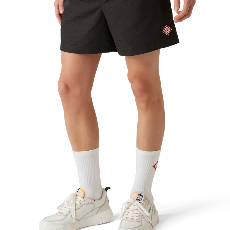 Die Jacquard-Shorts sind ein durchgehend bedrucktes Modell aus dem charakteristischen Monogram-Stoff des Hauses. Abgerundet durch einen elastischen Bund mit innenliegendem Kordelzug, Nahttaschen und einem Netzfutter.