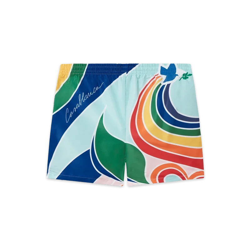 Die Le Pouvoir Des Fleurs Badehose ist ein Sommer-Must-have aus technischem Polyestergewebe mit saisonalem Druck, der Casablanca-Symbolik mit arabischer Ikonografie vereint. Mit elastischem Bund, Kordelzug und Seitentaschen.