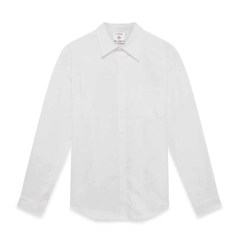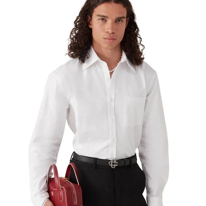 Das Baumwoll-Monogramm-Jacquard-Oxford-Hemd ist ein klassisches Langarm-Design. Mit Brusttasche, spitzem Kragen, Knopfleiste, Corozo-Knöpfen mit ineinander verschlungenem Cc-Logo und klassisch abgerundetem Saum.