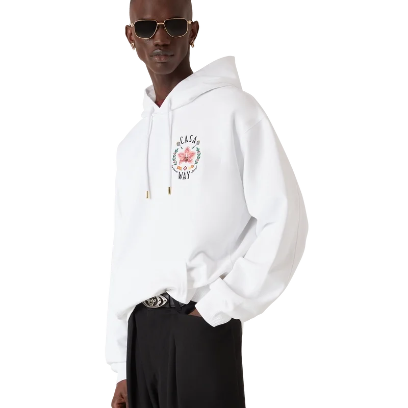 Das Casa Way Orchid Kapuzensweatshirt ist ein raffiniertes Langarm-Design mit dem saisonalen Casa Way Orchid-Motiv, das digitale Kunst durch den fortwährenden Dialog zwischen Technologie und Natur erkundet. Abgerundet durch eine Kapuze, einen Kordelzug sowie gerippte Bündchen und einen gerippten Saum.