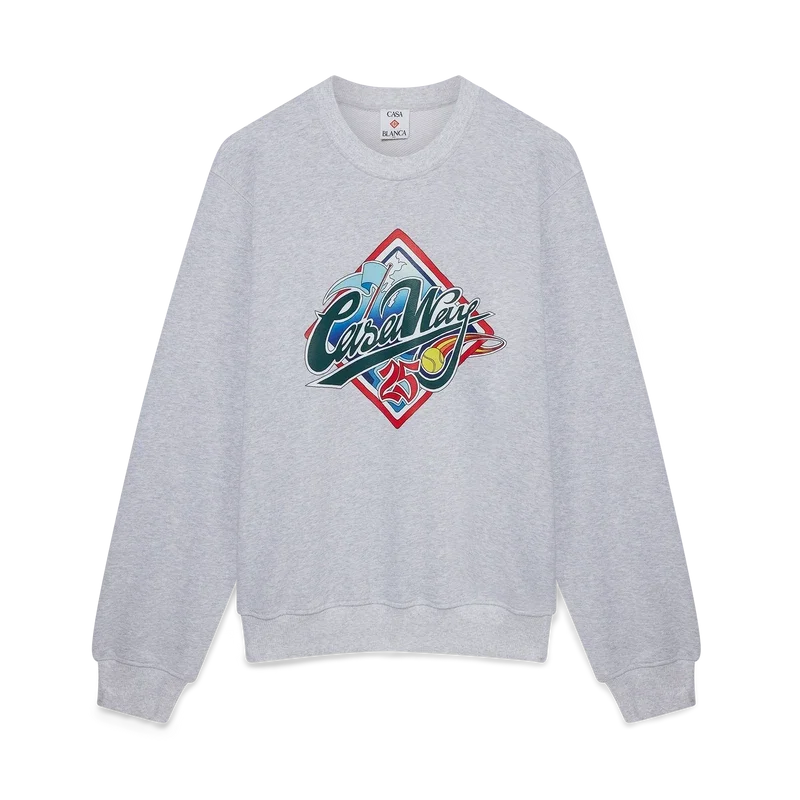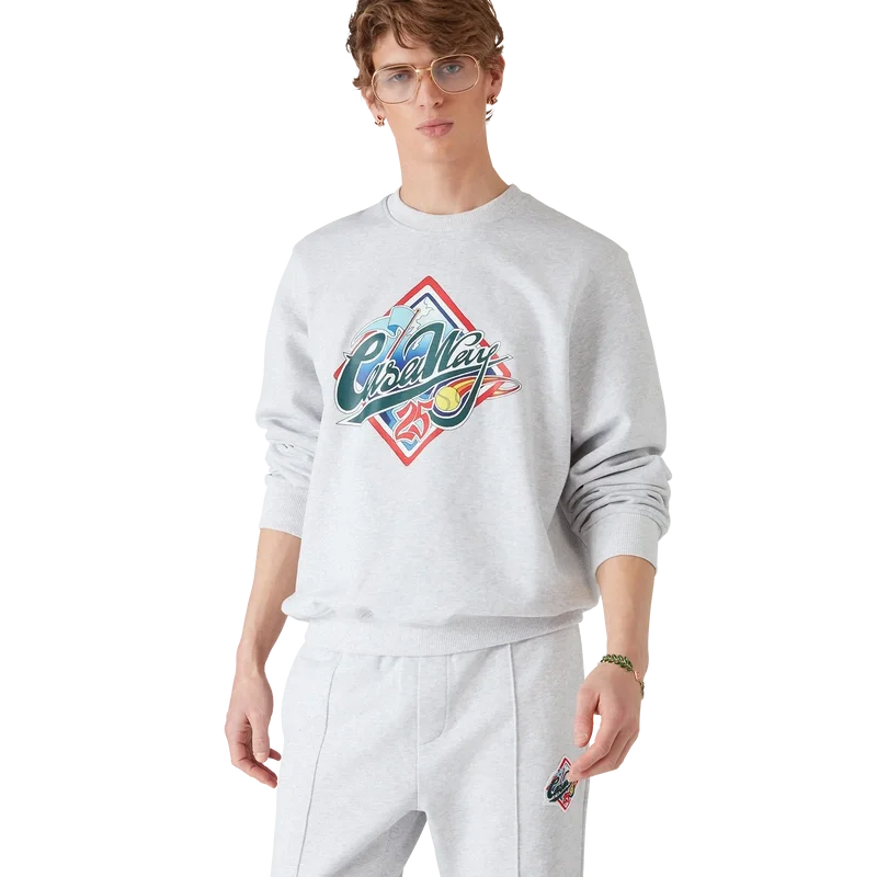 Das Casa Way World Series Sweatshirt ist ein bedrucktes Langarm-Modell mit charakteristischem Design, das klassische amerikanische Baseball-Symbole für Casa Way Tennis neu interpretiert. Abgerundet durch einen klassischen Rundhalsausschnitt sowie gerippte Bündchen und Saum.