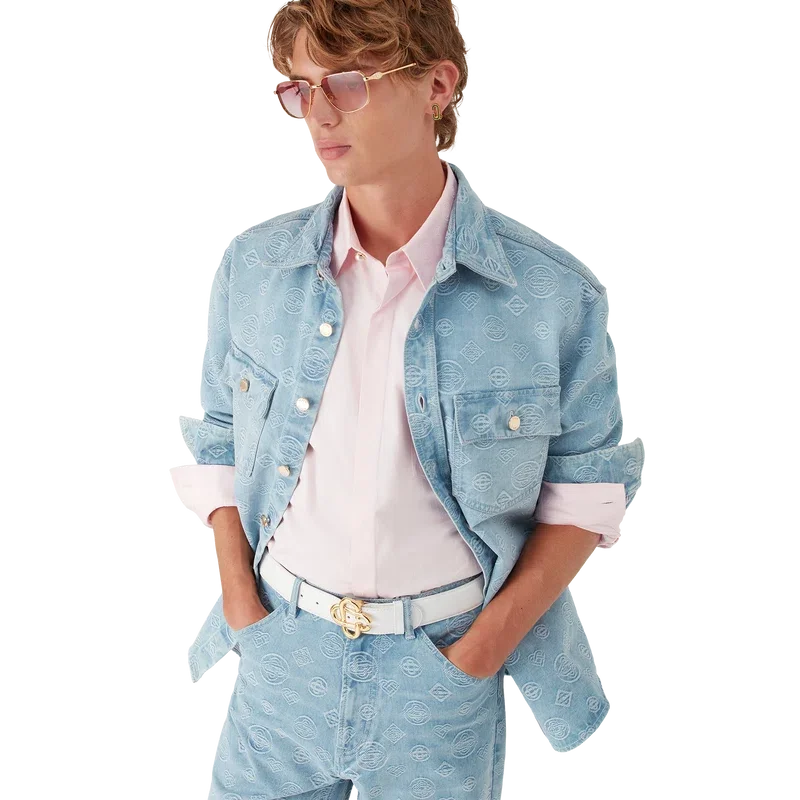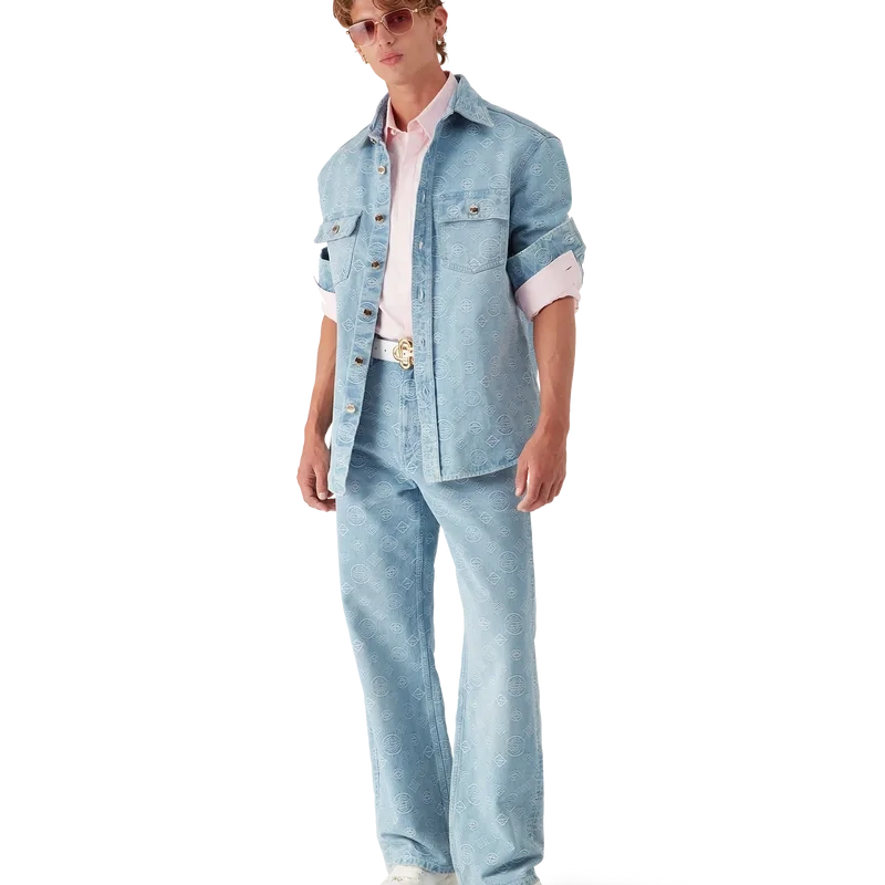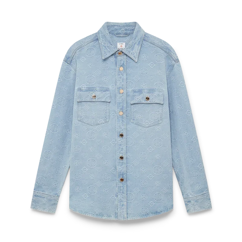 Das Denim-Monogramm-Hemd ist ein langärmeliges Modell mit dem wiederkehrenden Honeydew-Logo des Hauses. Dieses Muster unterscheidet sich von unseren anderen Monogrammen, da es einzigartige Formen zu einem einheitlichen Muster kombiniert. Abgerundet wird es durch einen spitzen Kragen, einen Knopfverschluss, Brusttaschen und vergoldete Druckknöpfe mit Casablanca-Logo.