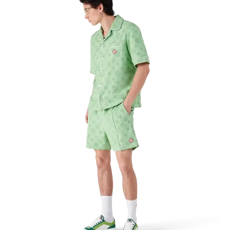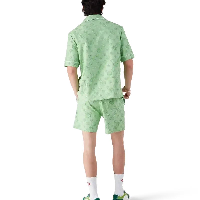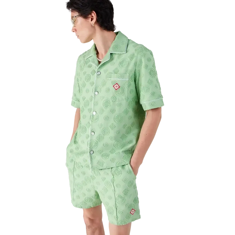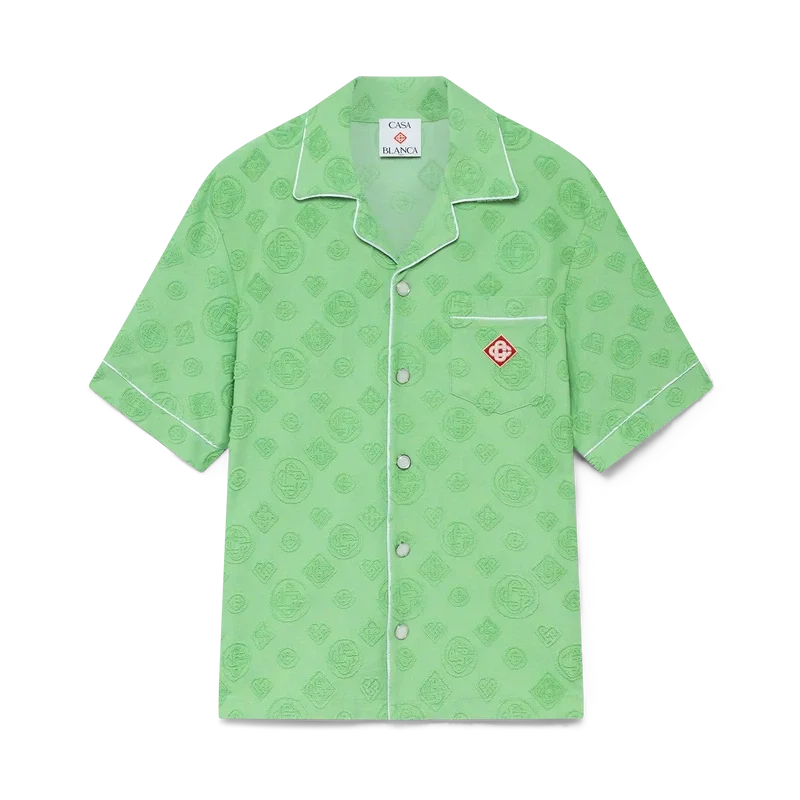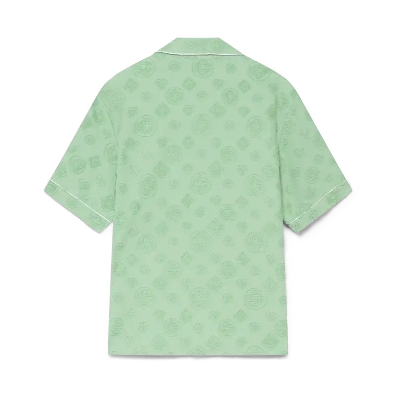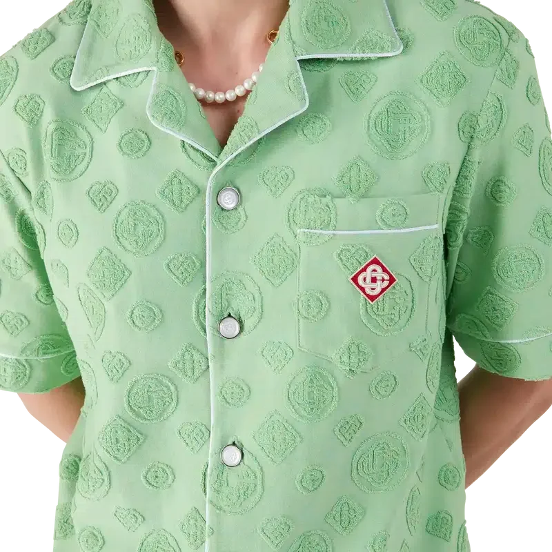 Das Monogram-Frottee-Hemd mit kurzen Ärmeln ist ein Design mit dem charakteristischen Diamond Monogram-Print des Hauses. Abgerundet durch eine Brusttasche, kontrastierende Paspeldetails, charakteristische goldgeränderte Perlmuttknöpfe und einen Kubanerkragen.
