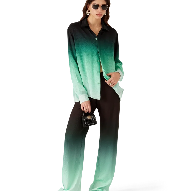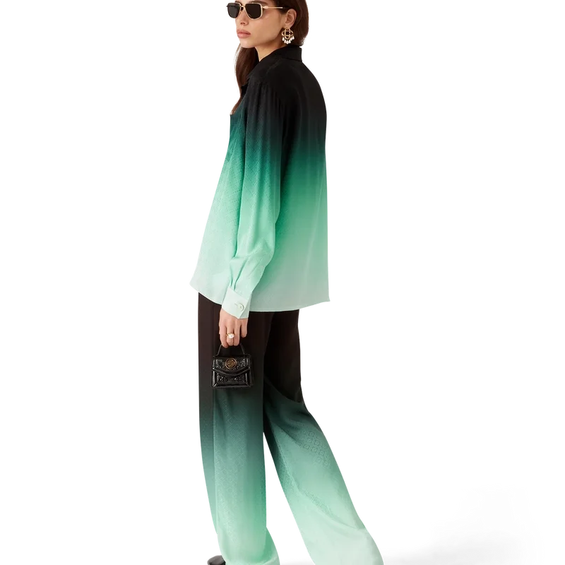 Gradient Ping Pong Jacquard Langarm-Seidenhemd