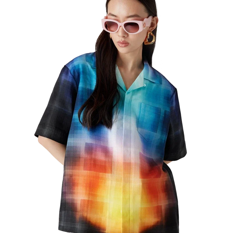 Das Hemd mit Karomuster im Farbverlauf ist ein bedrucktes Design mit den Farbverläufen der Saison, gefertigt aus einem Baumwollmischgewebe mit Karomuster. Abgerundet durch einen Kubanerkragen, eine Brusttasche, einen verdeckten Knopfverschluss und Corozo-Knöpfe mit dem ineinander verschlungenen Cc-Logo.