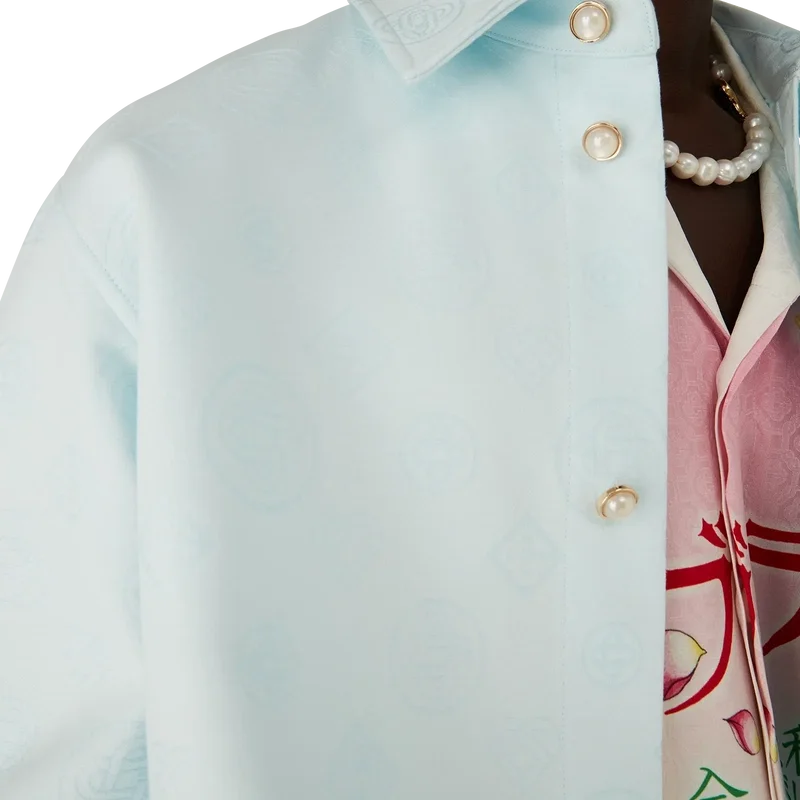 Das Langarmhemd aus Baumwolle mit Monogramm ist ein klassisches Design mit dem wiederkehrenden Honeydew-Logo des Hauses. Dieses Muster unterscheidet sich von unseren anderen Monogrammen, da es einzigartige Formen zu einem einheitlichen Muster kombiniert. Abgerundet wird es durch einen spitzen Kragen, einen Knopfverschluss, eine Brusttasche und die charakteristischen goldgerahmten Perlenknöpfe.